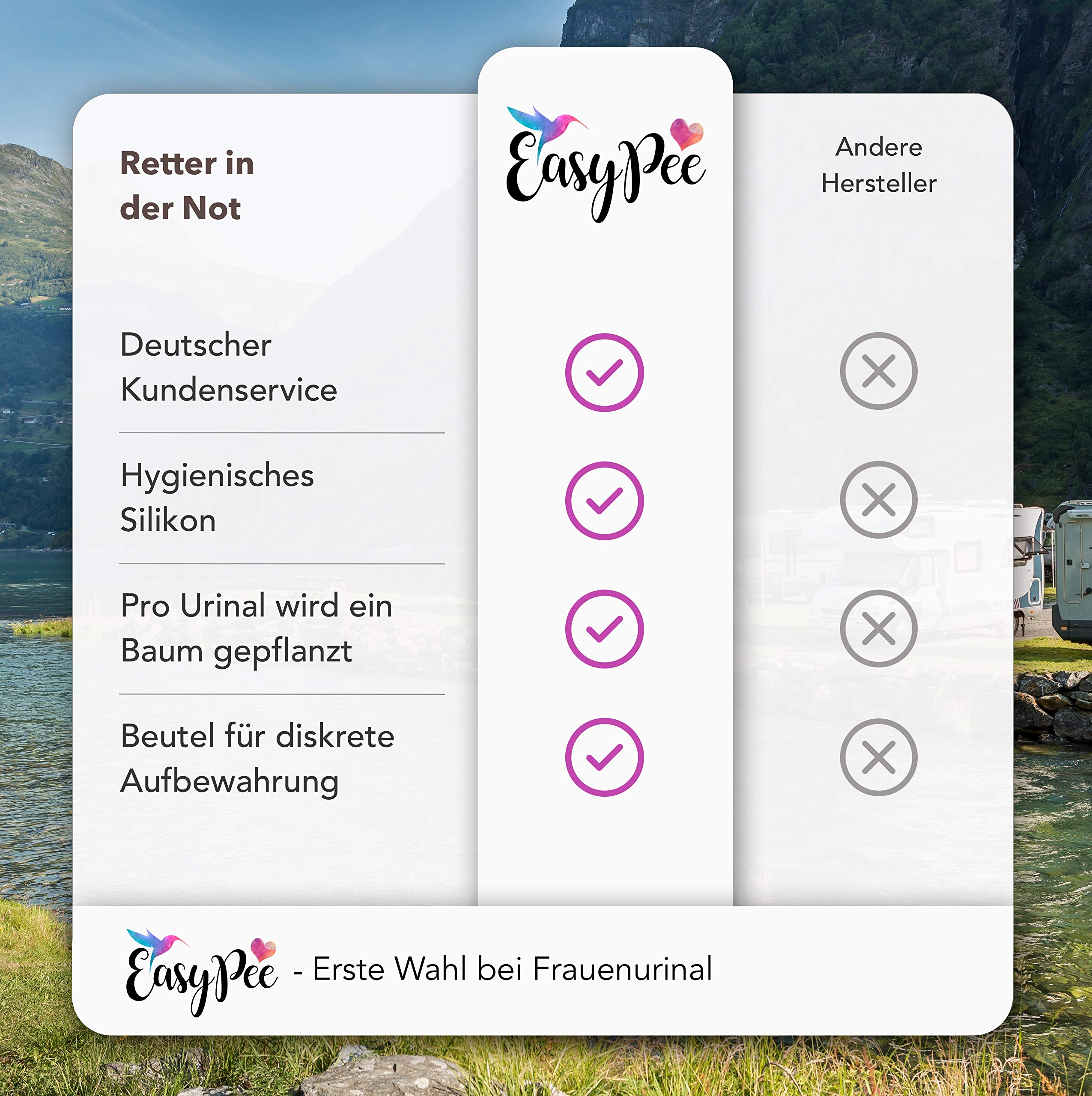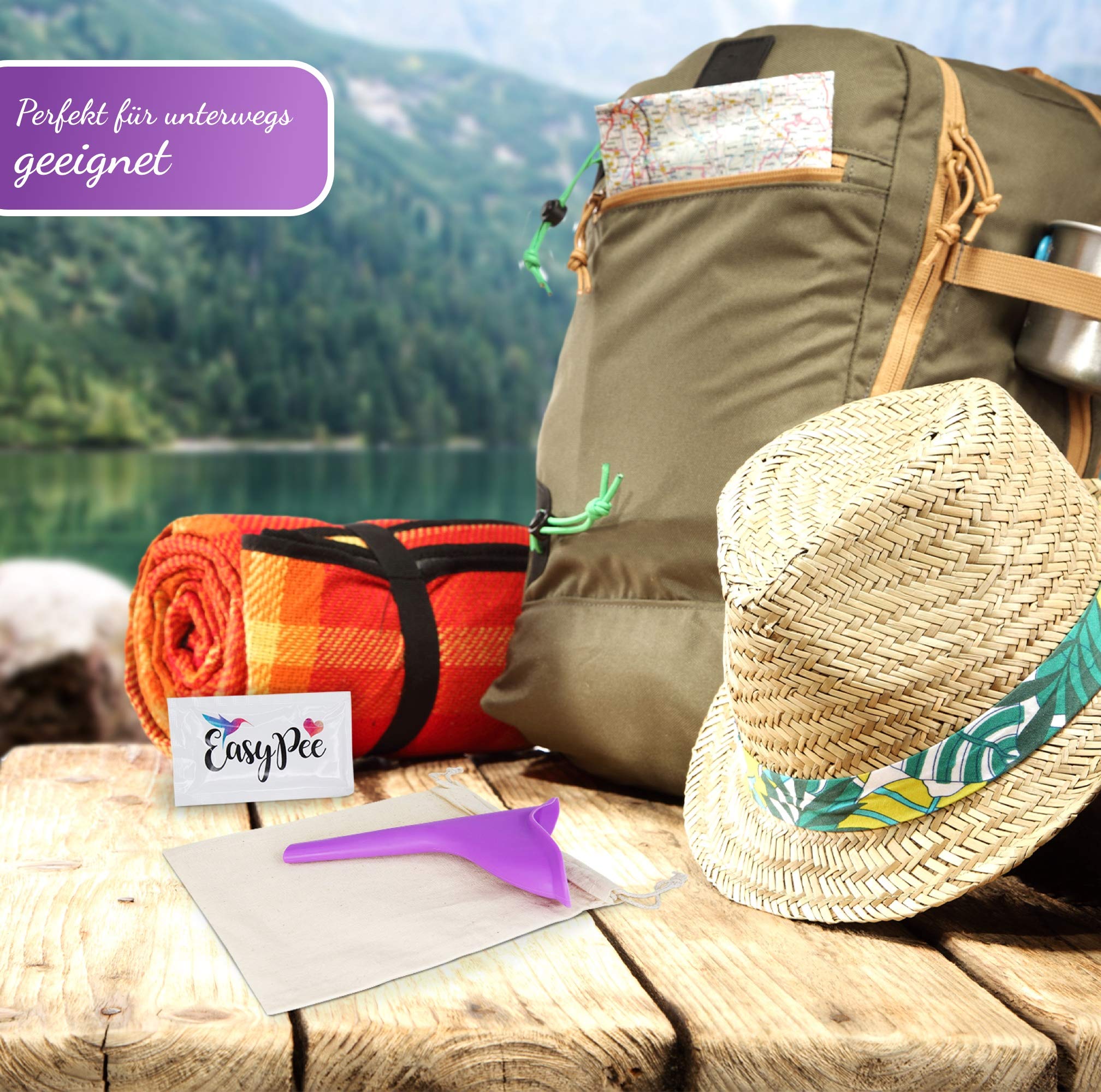 EasyPee women's urinal for on the go: The original urinal for women - Urinella standing urinal with Fairtrade organic bag (peeing aid)
