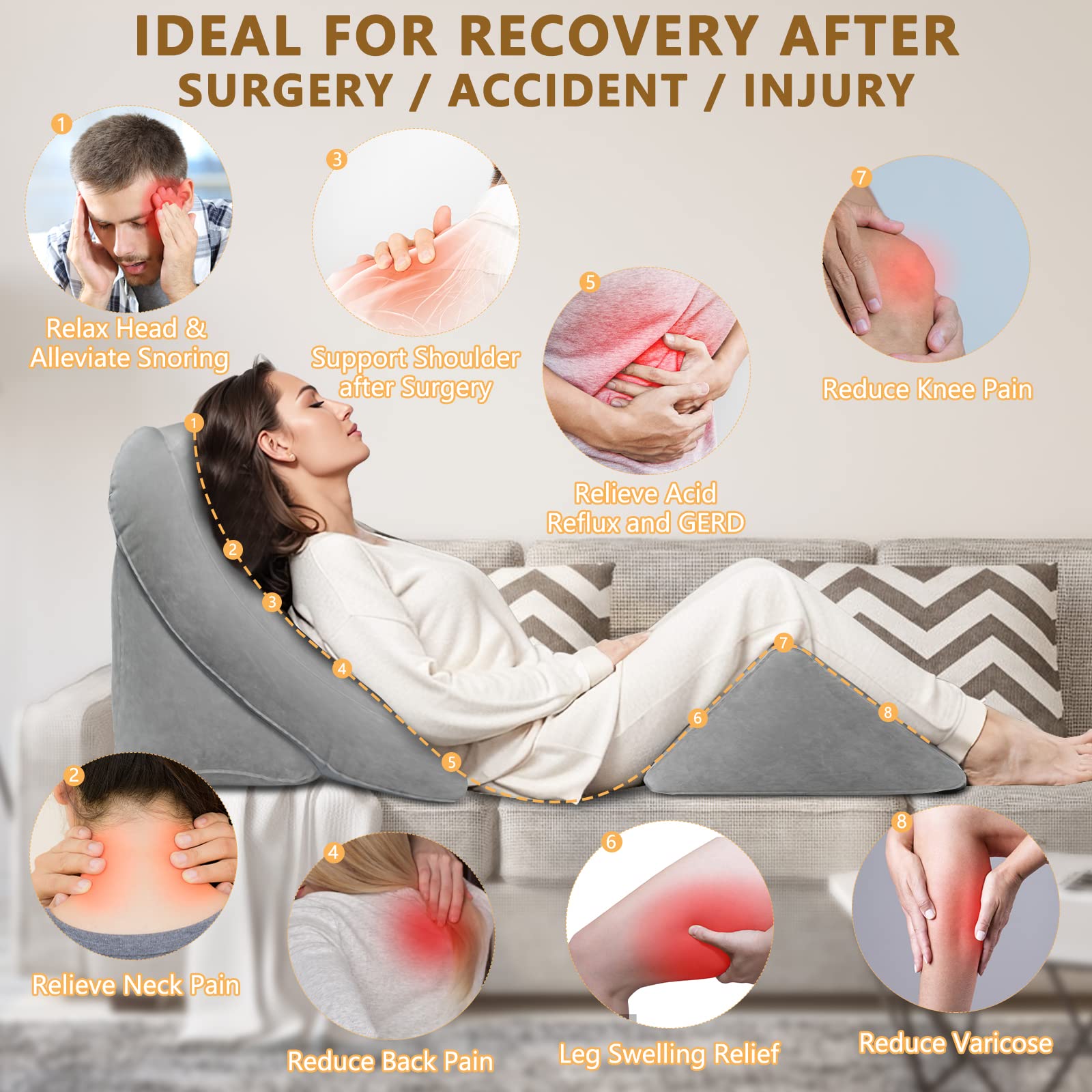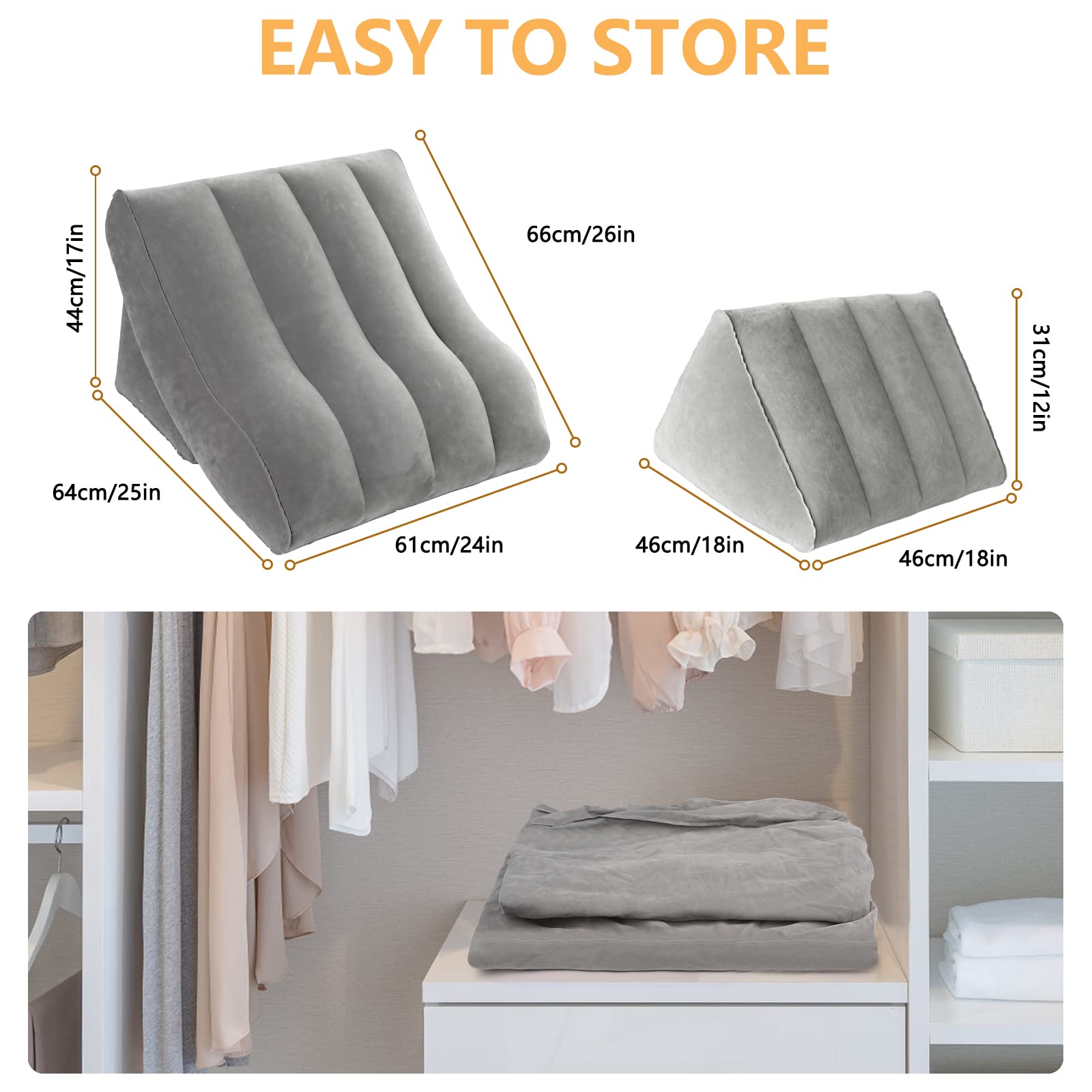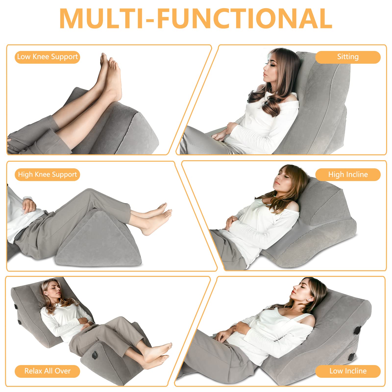 EKEPE Inflatable Bed Wedge Pillow Set for Sleeping, Orthopedic Wedge Pillow for After Surgery, Post Surgery Pillow for Knee & Back Pain, Acid Reflux, GERD, Anti Snoring