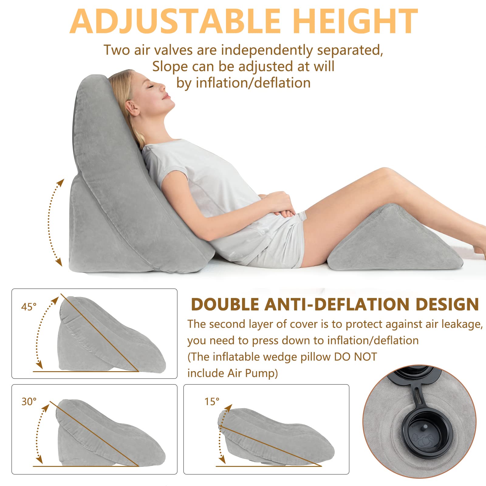 Brand: EKEPE Color: Gray Characteristics: 【Ergonomic Design】: EKEPE inflatable wedge pillows for sleeping set have an ergonomic angle design, perfectly... Read more