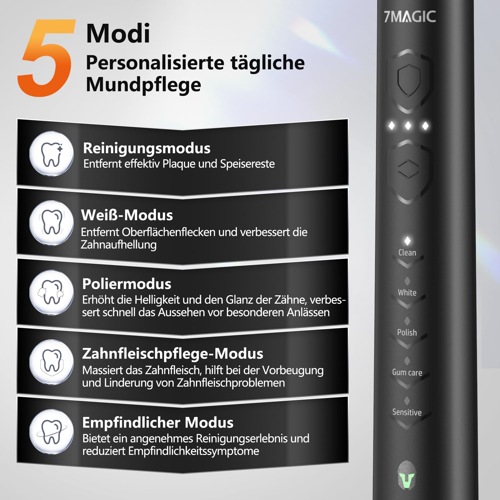 Brand: 7MAGIC Color: Knight Black Characteristics: 3 intensities and 5 modes to meet your personalized oral care needs and provide... Read more