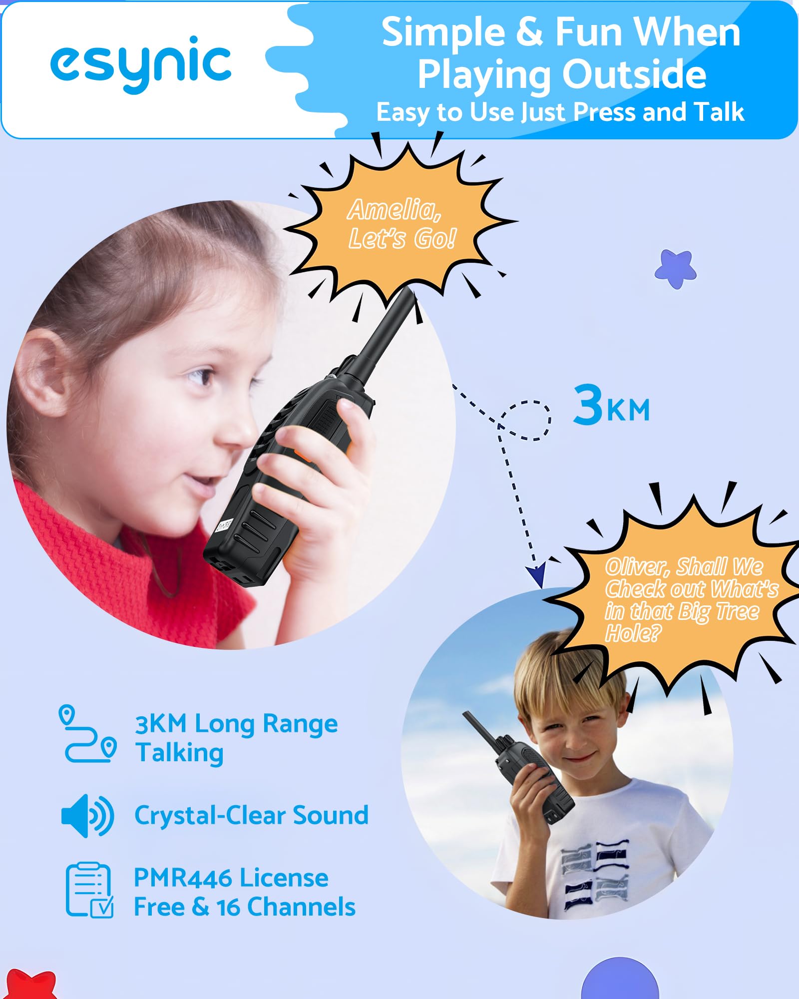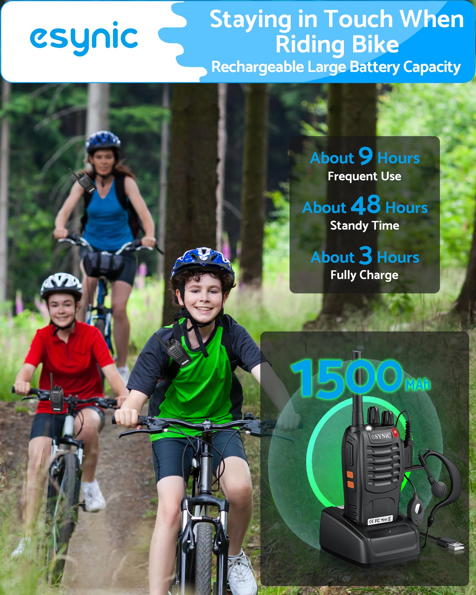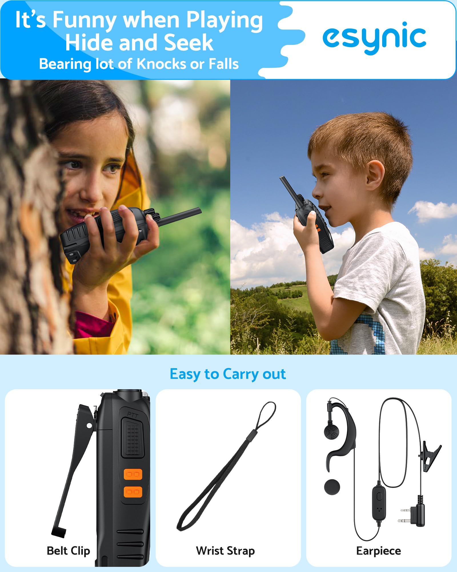 - Noise reduction function: This eSynic walkie-talkie's DCS and CTCSS noise reduction function reduces noise, providing clear conversation quality.