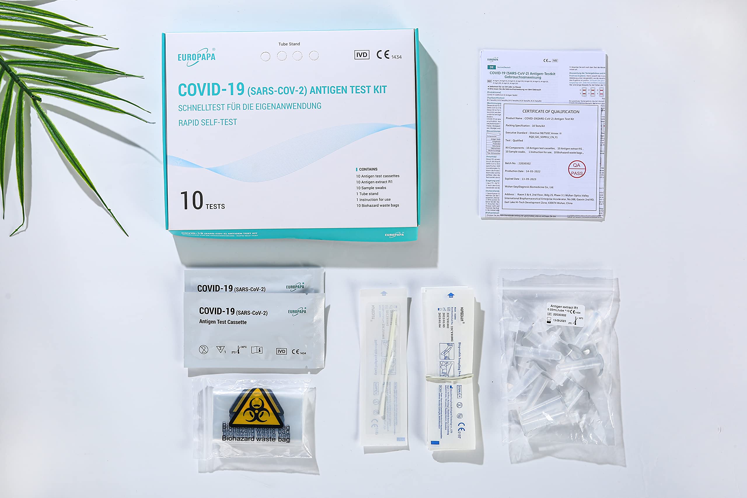 EUROPAPA® 10x Corona lay test self-test Covid-19 antigen test for SARS-CoV-2 rapid test for self-testing test cassette sample swab antigen extract individually packaged