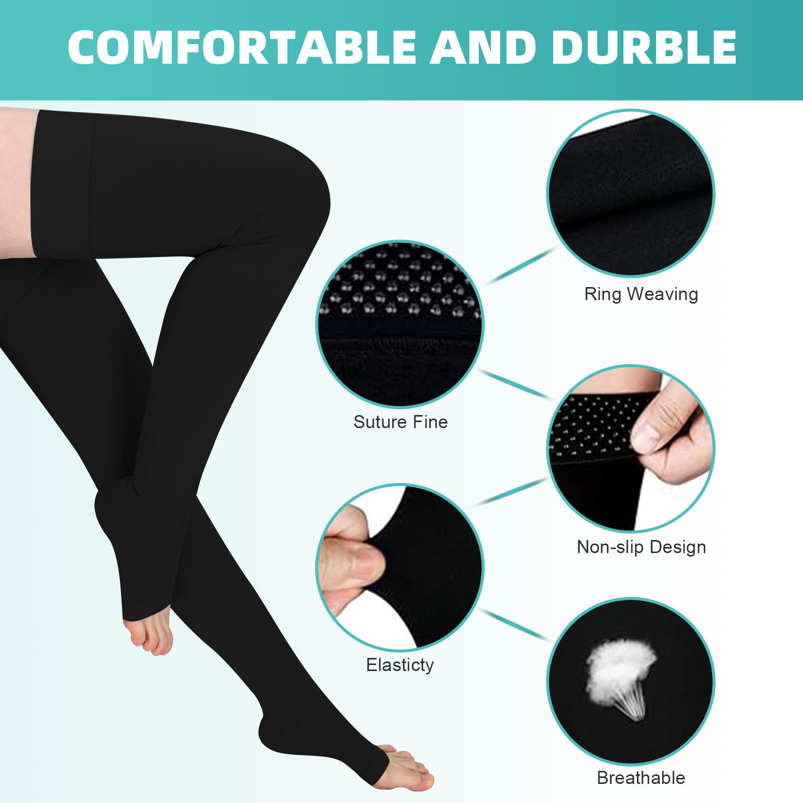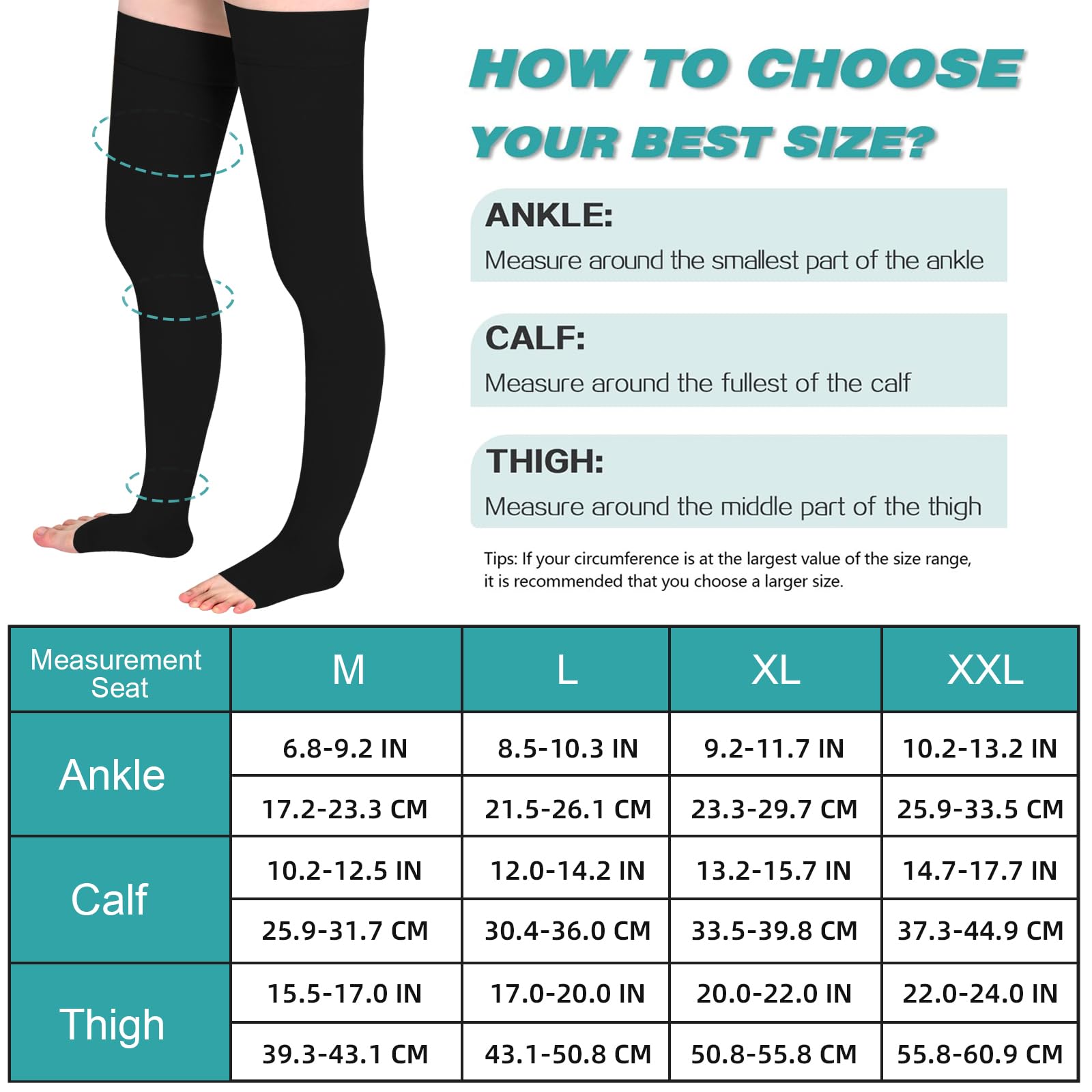 Evolyline 2 Pairs of Compression Stockings for Women & Men, Class II Thigh-Length Support Stockings Compression Socks for Air Travel Graduated Support