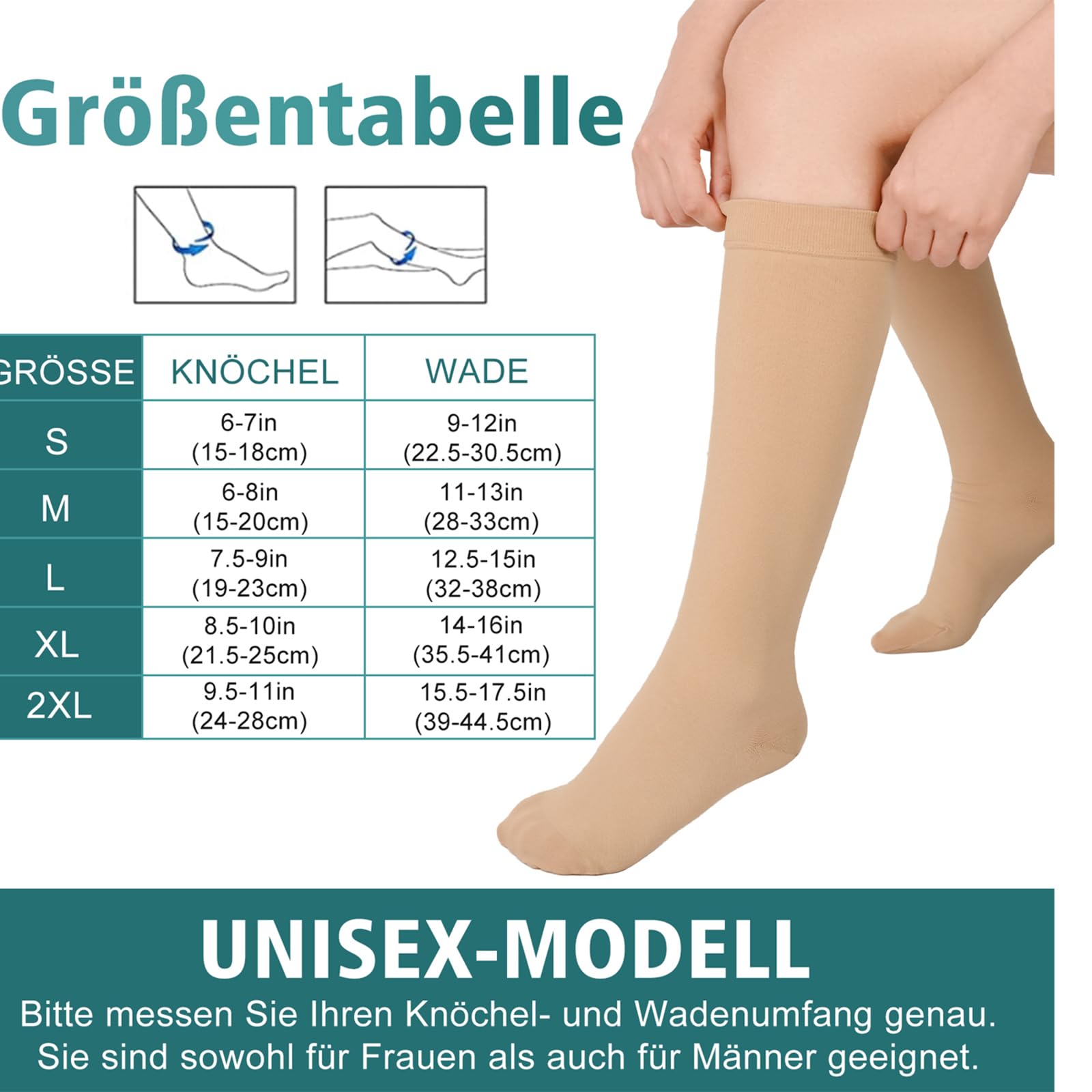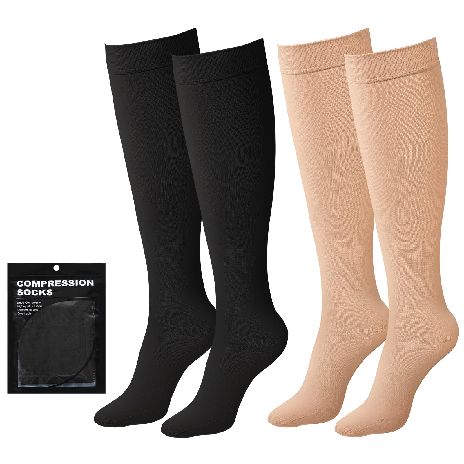 Evolyline 2 pairs of medical compression stockings for women and men 20-30 mmHg class 2, calves, closed toe, support stockings, compression socks, thrombosis stockings, graduated support for edema