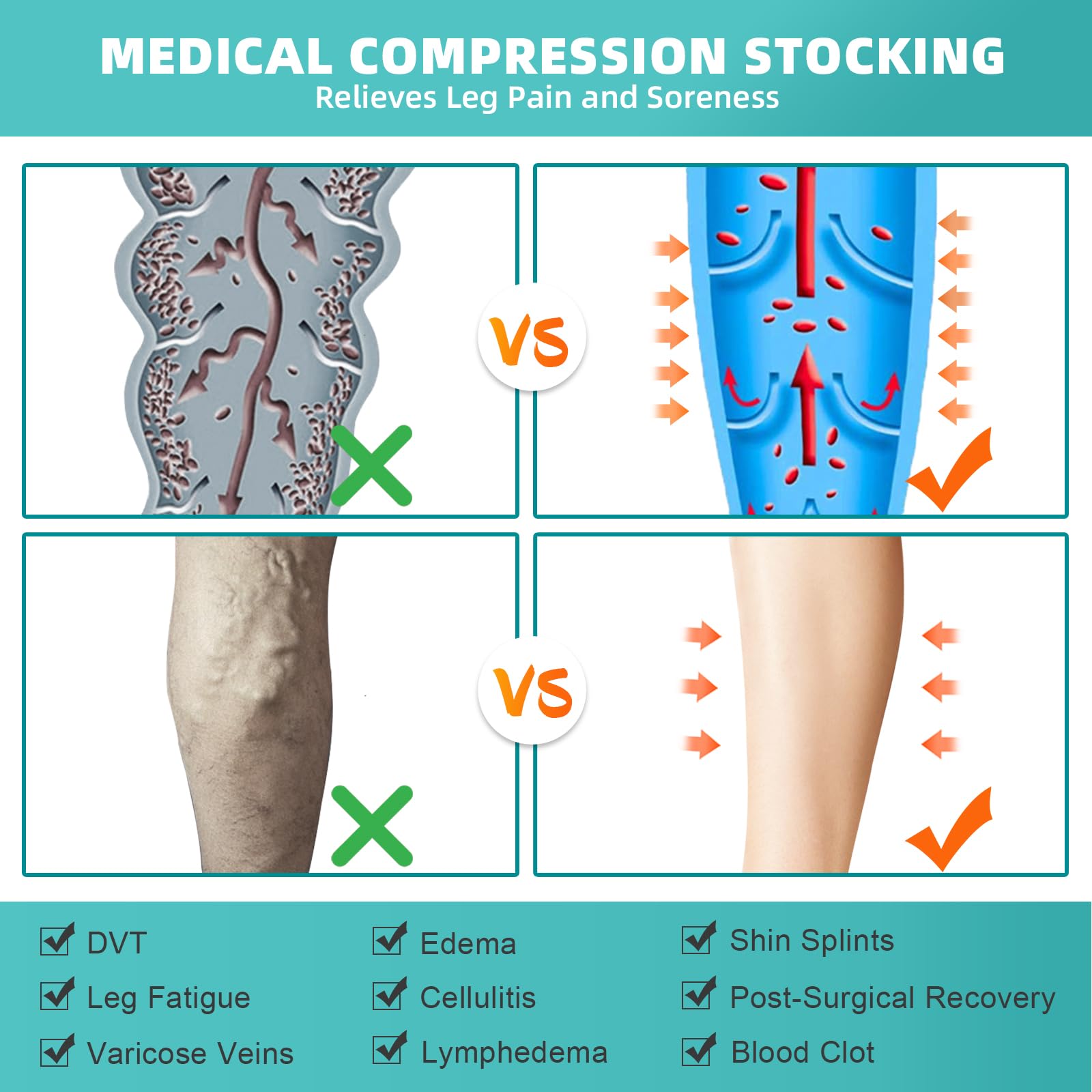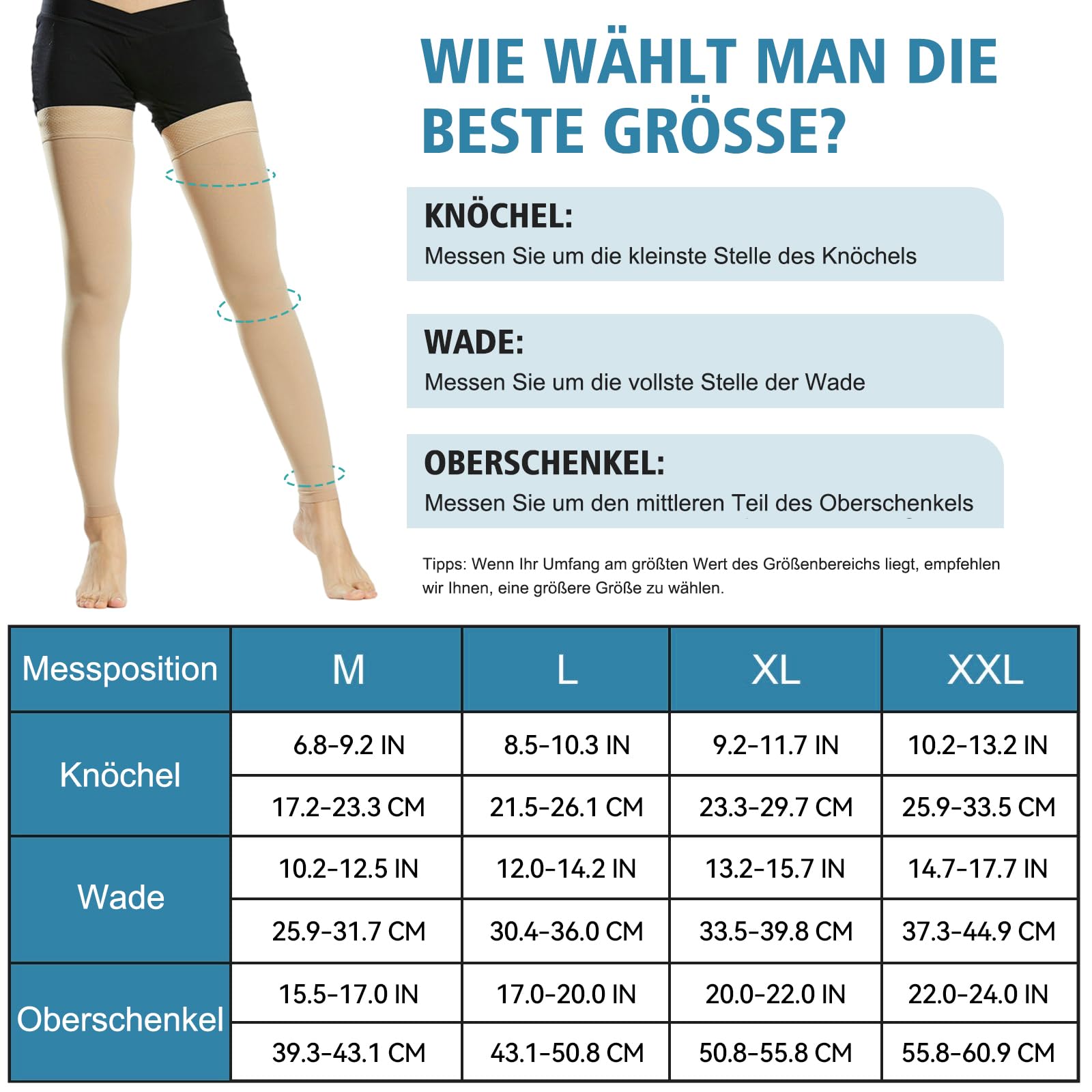 Evolyline Medical Compression Stockings Women & Men 20-30 mmHg, Class II Thigh Long Compression Socks Support Stockings Footless with Silicone Band for Graduated Support Varicose Veins