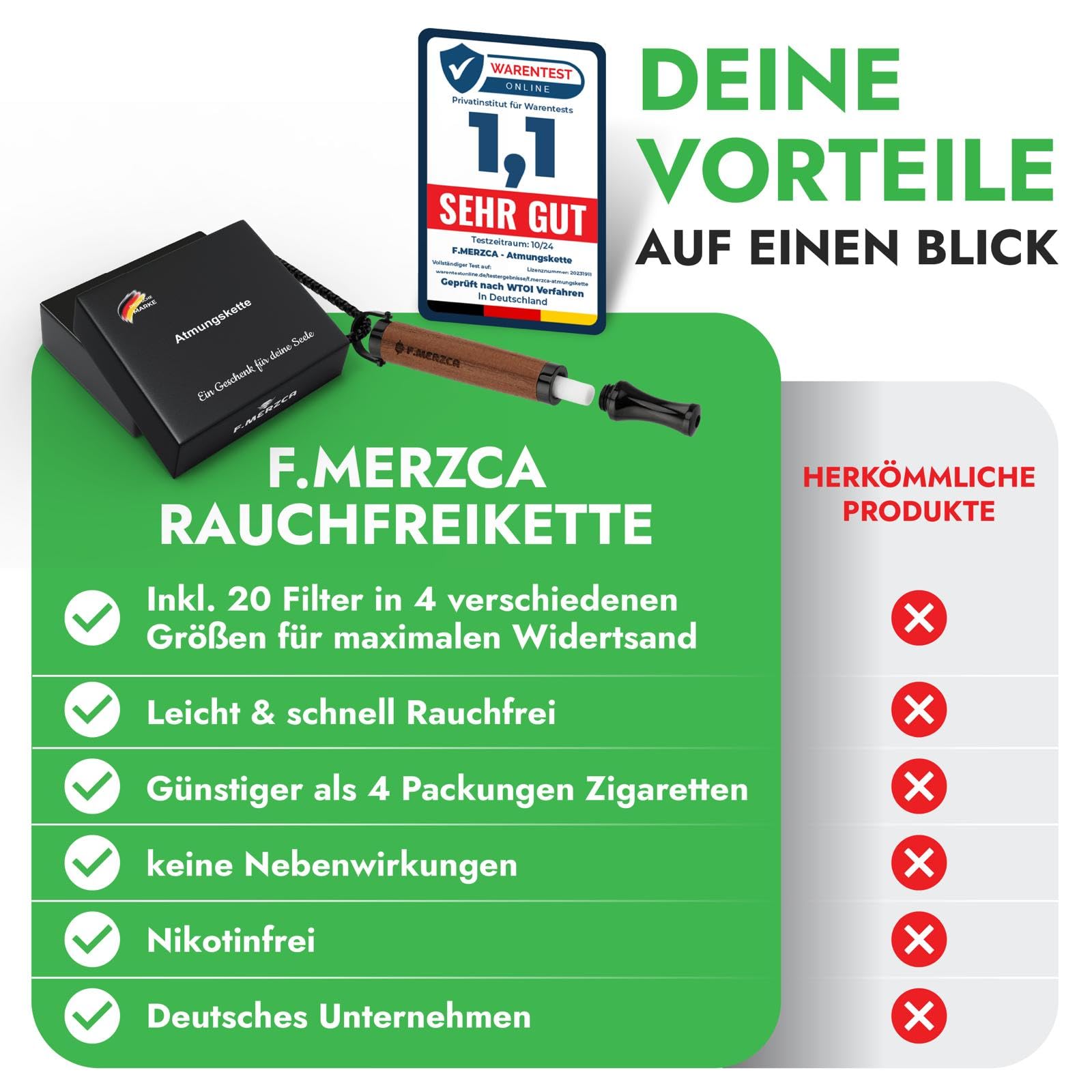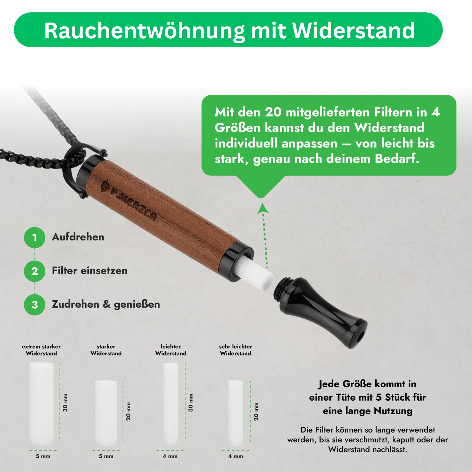 F.MERZCAยฎ Premium 2.0 Smoking Cessation Necklace with 20 Free Filters โ Individually adjustable resistance and authentic smoking sensation for effective smoking cessation, smoking cessation aid