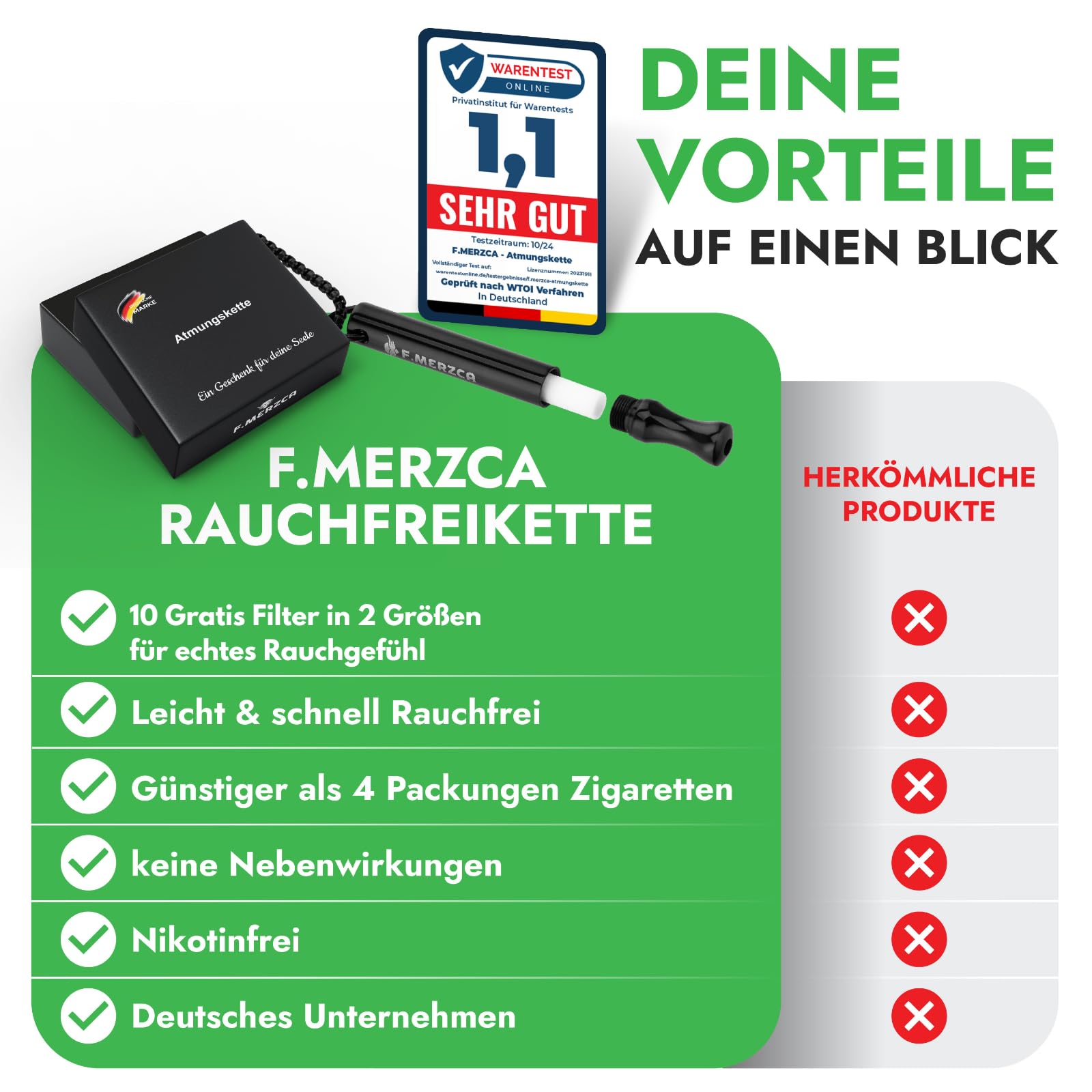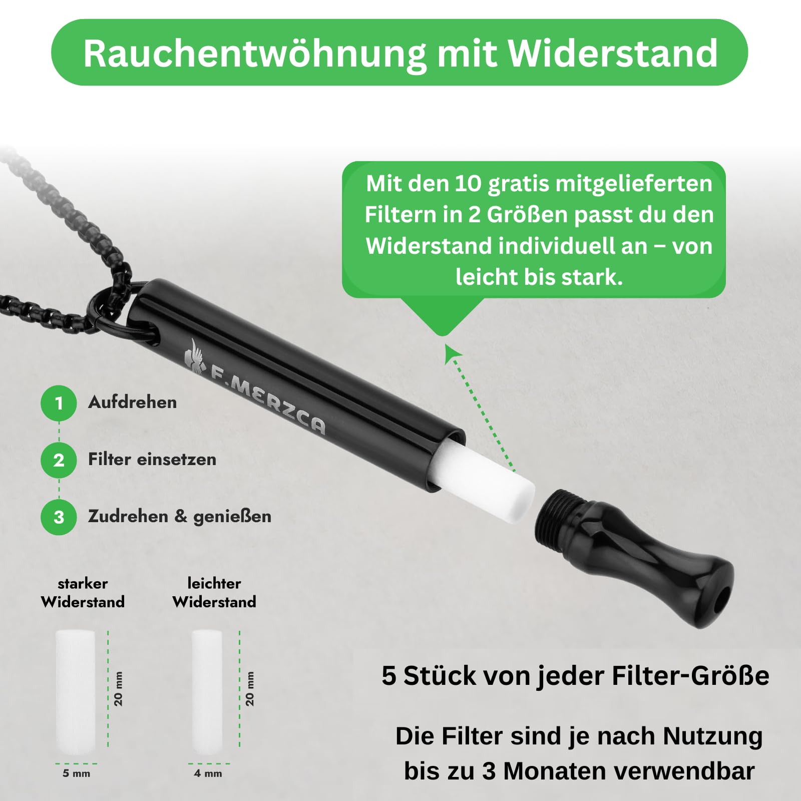 F.MERZCA Smoking Cessation Breathing Chain 2.0 with 10 free filters โ Cigarette replacement for real resistance when quitting smoking โ Finally smoke-free with non-smoking aid chain