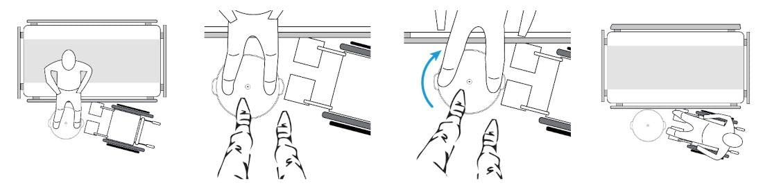 - The preset resistance of the rotating plate prevents the patient from falling over due to turning too quickly on the transfer aid.