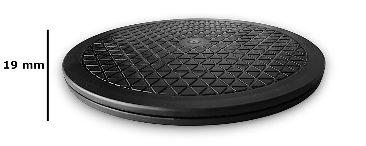 - Technical specifications: Diameter: 400 mm - Total width: 400 mm - Height: 19 mm - Weight: 1.0 kg - Load capacity: 120 kg - Color: Black - Scope of delivery: 1x turntable 40 cm with anti-slip knobs