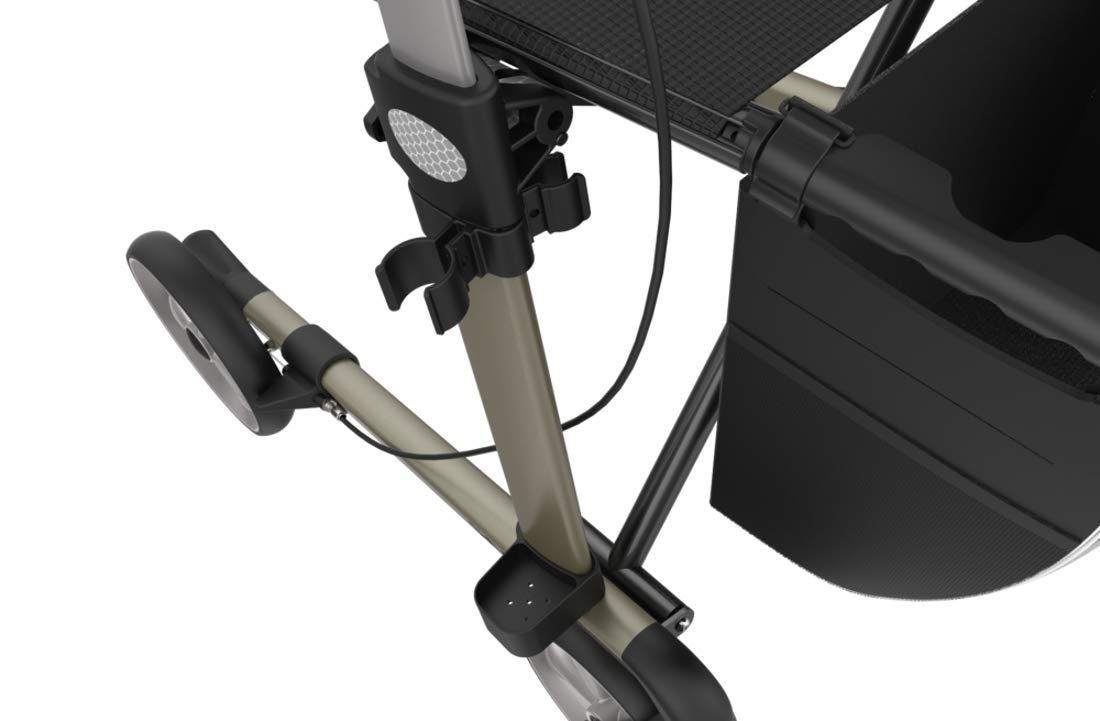- The walking stick holder ensures a secure hold on the rollator as both hands are free