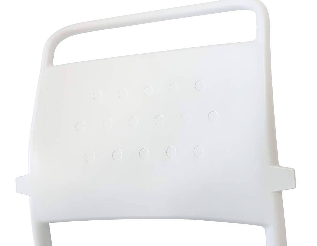 The FabaCare Bonn premium toilet wheelchair is a high-quality aid for the toilet, made in Germany. The frame of the toilet chair is made of a special plastic (rust-proof, easy to clean, very easy to disinfect, durable) with a tube insert. This product is used where using or reaching a conventional toilet is no longer possible due to a disability. The comfortable backrest is ergonomically shaped and has an integrated push handle. The armrests can be swung away, allowing easy entry and exit via the side of the hygiene wheelchair. The padded seat is comfortable and can be easily removed. The toilet wheelchair has a bucket holder and a toilet bucket. The footrests are height-adjustable, swung away, and removable. The 5-inch wheels are each equipped with a total lock. The wheelchair can be used over standard toilets.