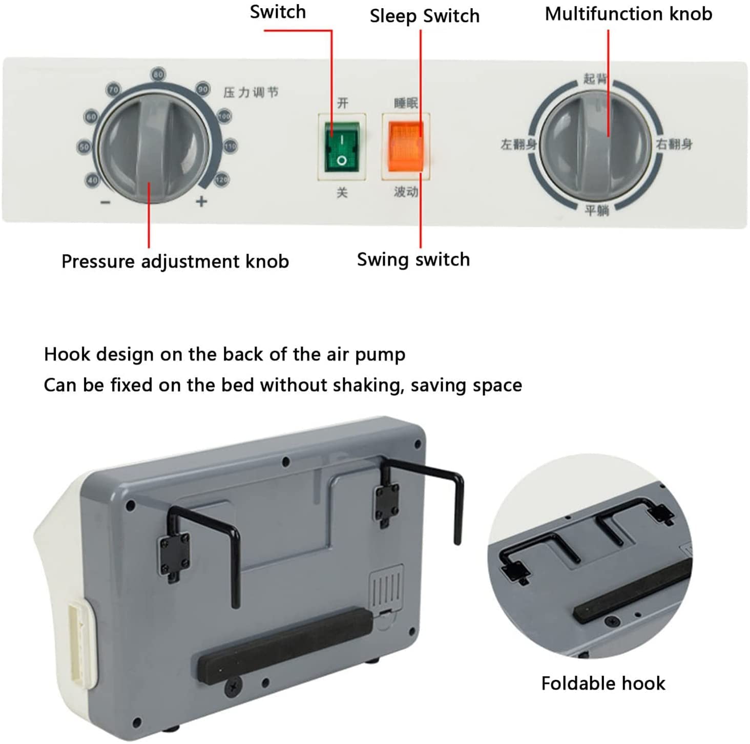 FOOJO Anti-Decubitus Mattress, Alternating Pressure Mattress with Lift and Left and Right Flip Design Function, Medical Air Mattress for the Prevention of Pressure Sores and Decubitus
