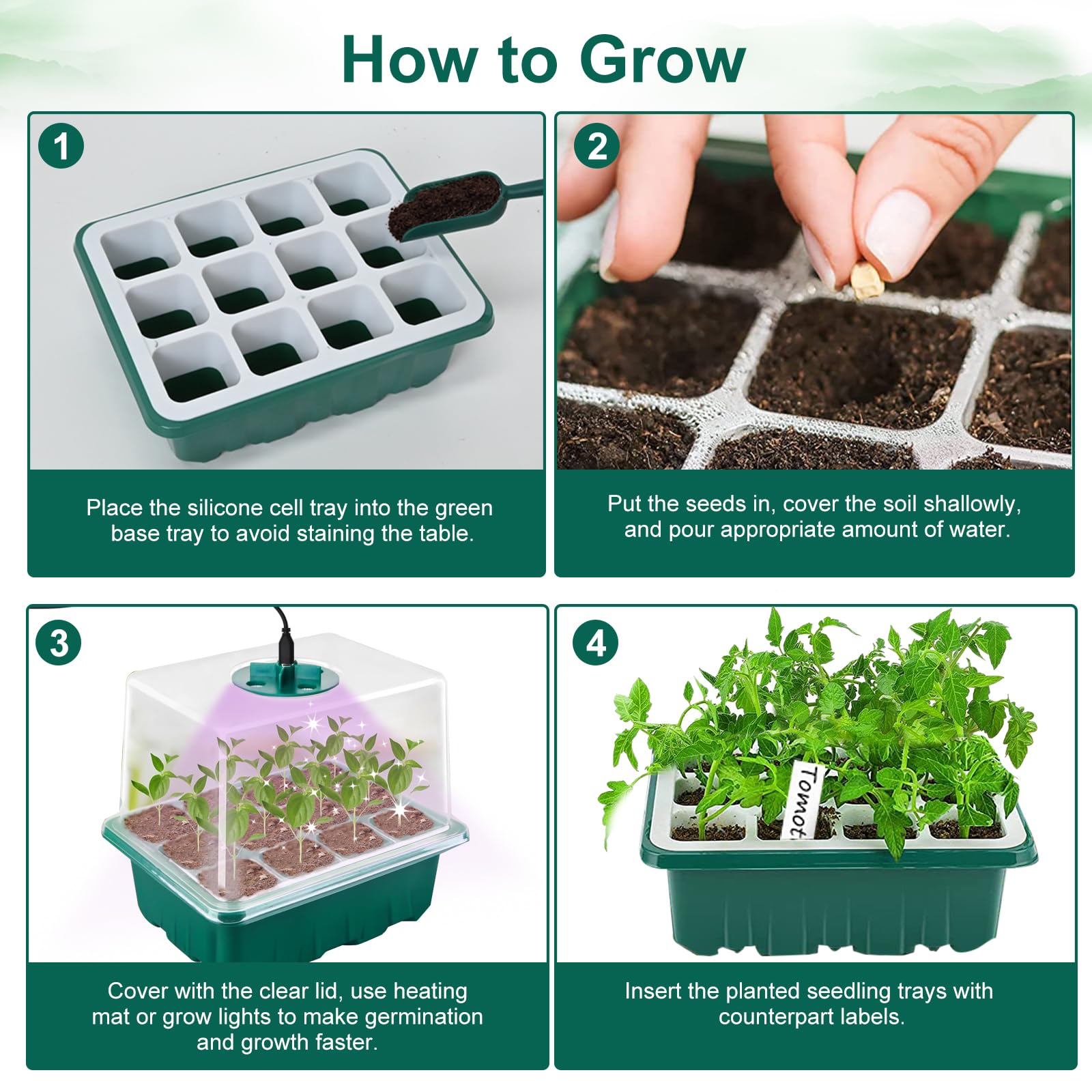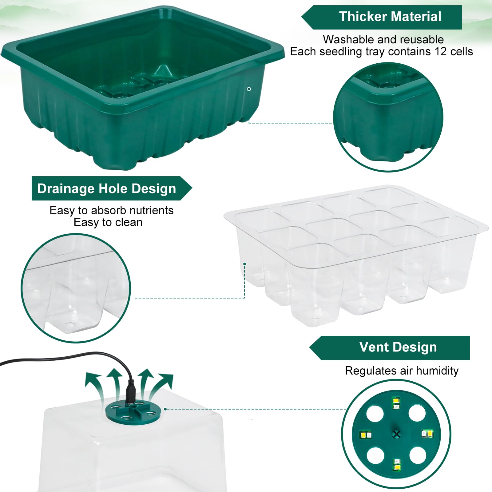 - đ±ăUpgraded Raised LidăThe transparent lid is 10 cm high, providing ample space for seedlings to grow, while also making it easy to observe the plants' growth process. The bottom is equipped with drainage holes to allow excess water to drain away in a timely manner.