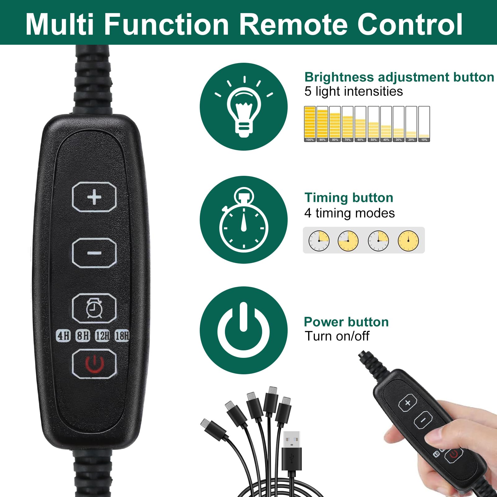 - đ±ăLighting DesignăThe plant growth light has 5 speeds, allowing you to adjust the brightness according to the situation. With a timer function, there are four options: 4h, 8h, 12h, and 18h. You can artificially control the light quality, light intensity, and light cycle to promote plant growth.