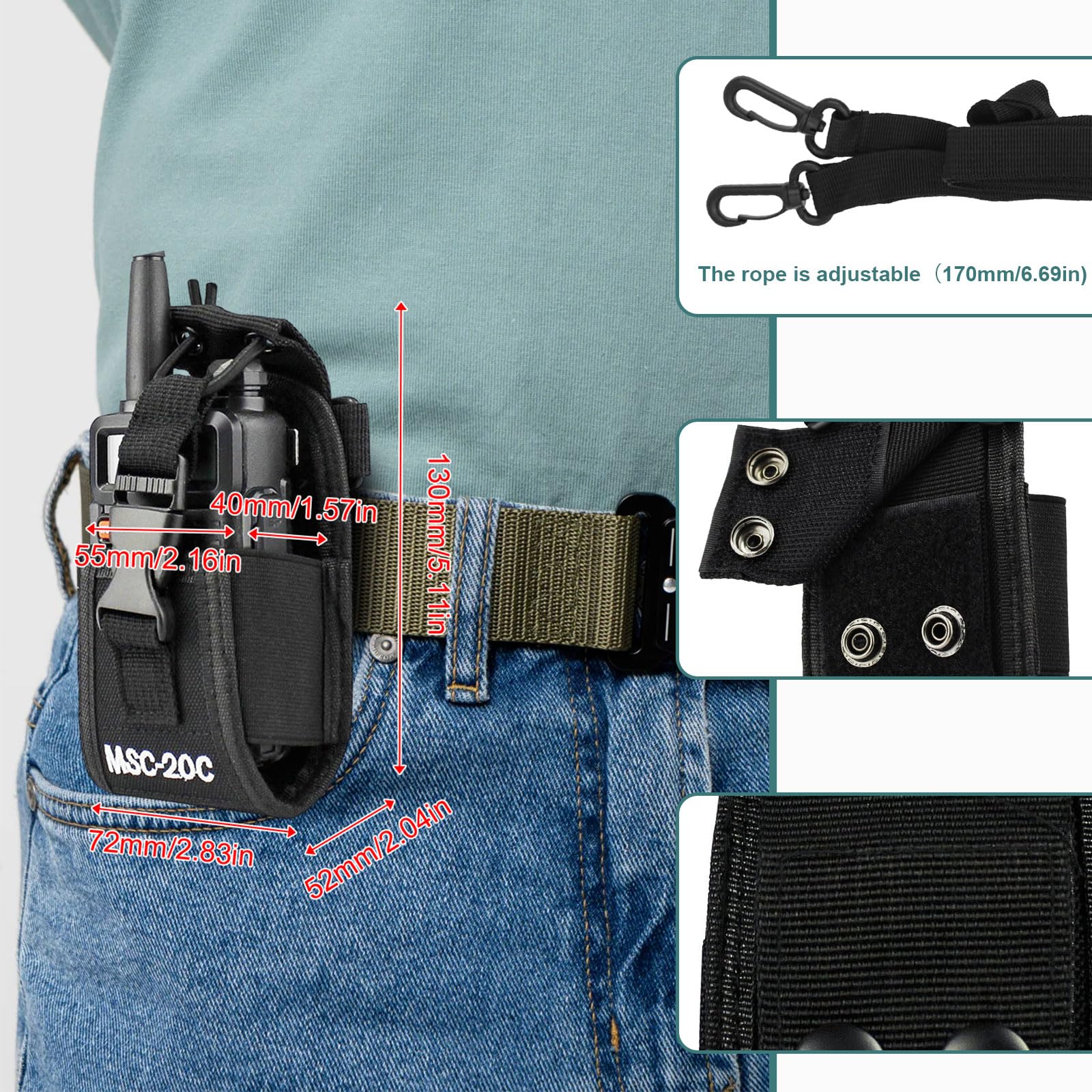 Radio holder walkie talkie radio walkie talkie talkie holster walkie talkie pouch case radio key radio cover universal radio bag with adjustable shoulder strap MSC-20C, black,