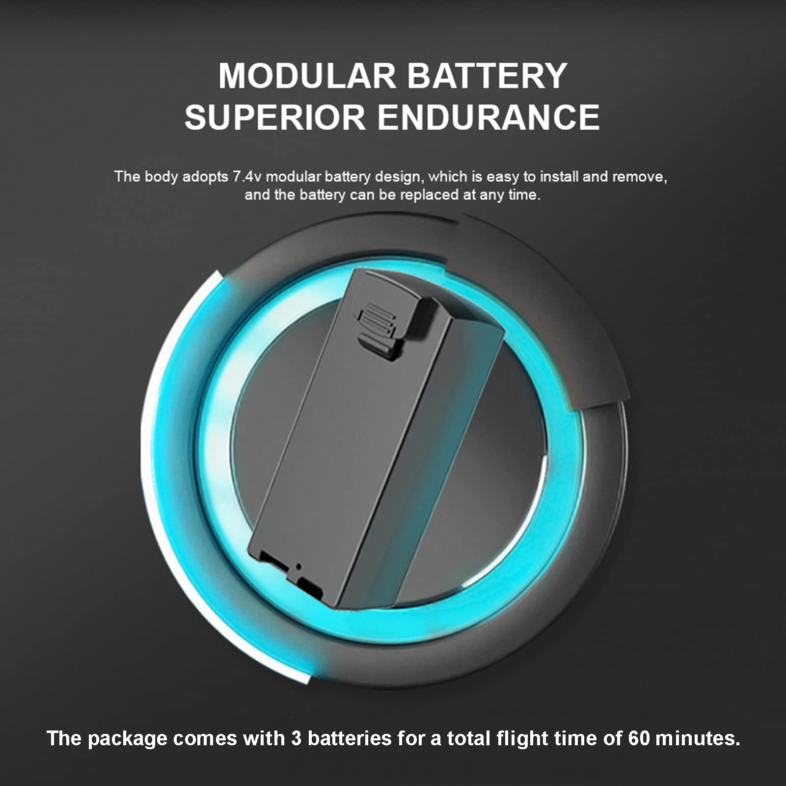 - Long flight time and brushless motor: Equipped with powerful brushless motors for flight stability. Three batteries are included for a total flight time of 60 minutes. The GPS module and optical flow positioning make the drone safer and more reliable.