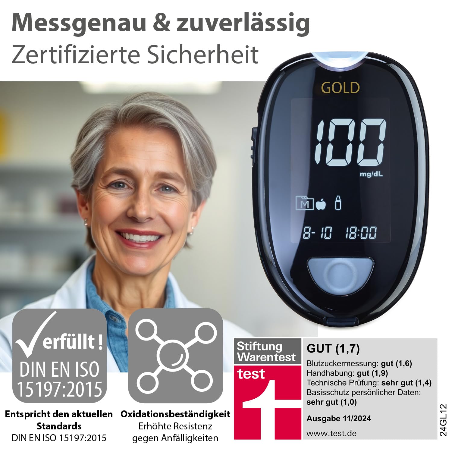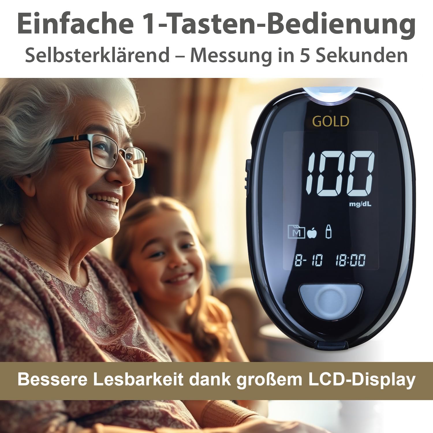 GlucoCheck GOLD blood glucose meter (mg/dl) for blood glucose self-monitoring in diabetes