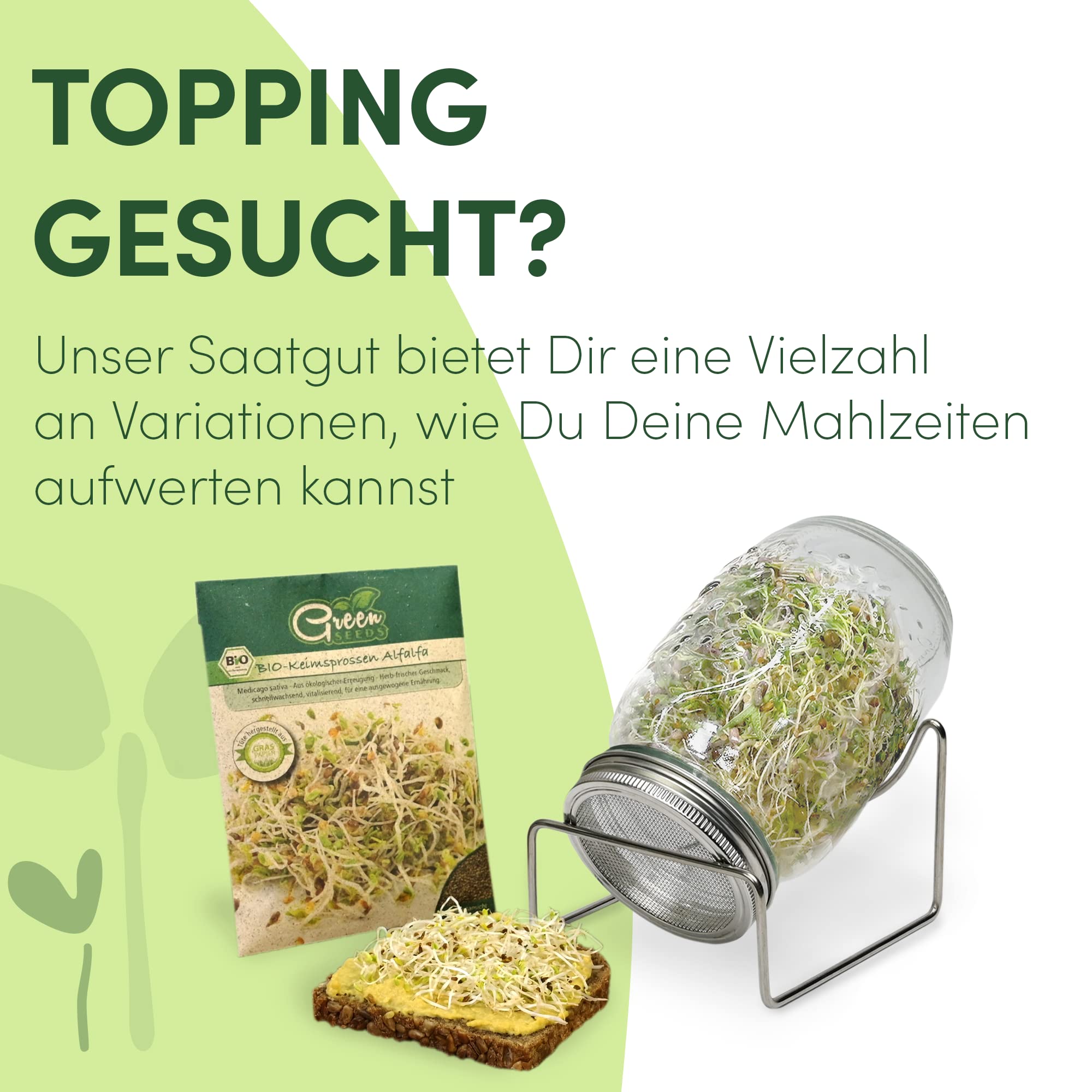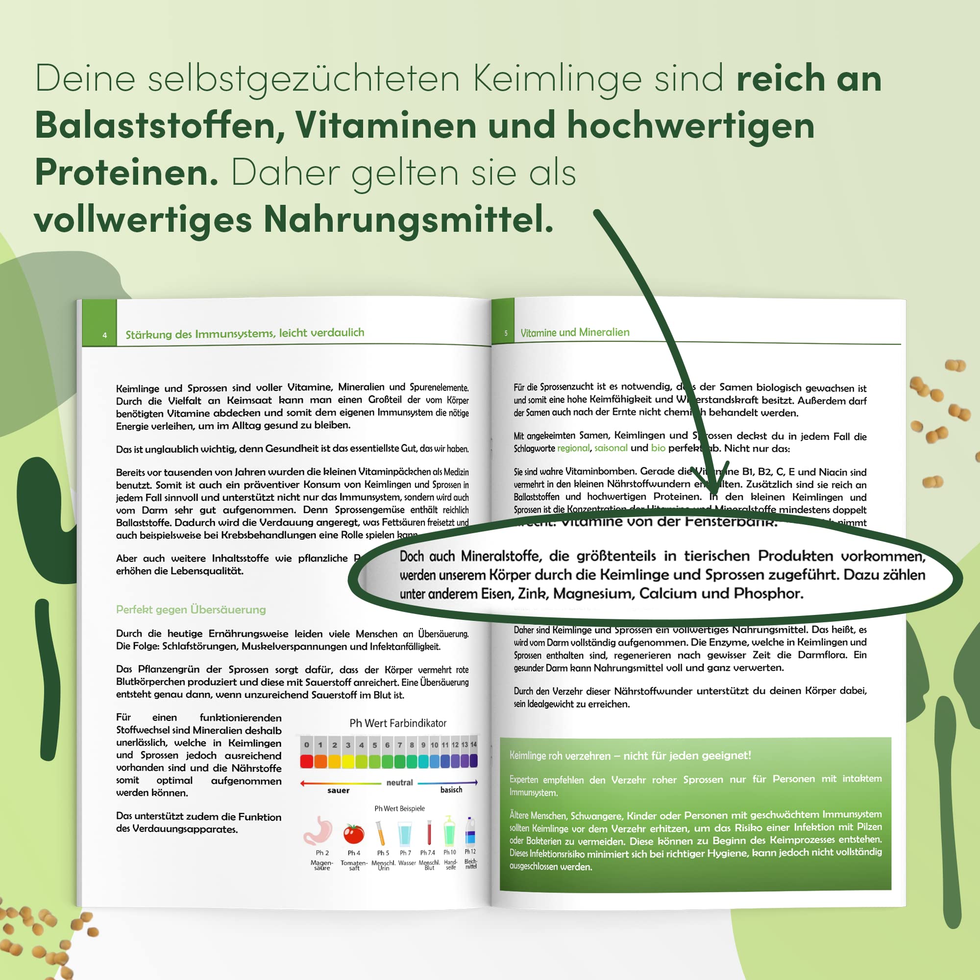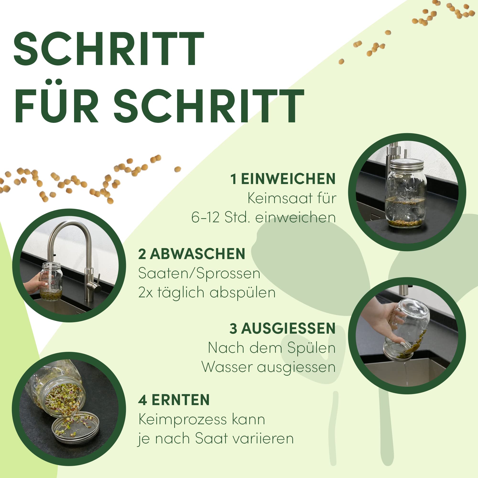 Green SEEDS Sprouting Jar, Set of 2, 1000ml, with High-Quality Stainless Steel Mesh Lid, Stand + FREE Sprouting ABC [Print Version]
