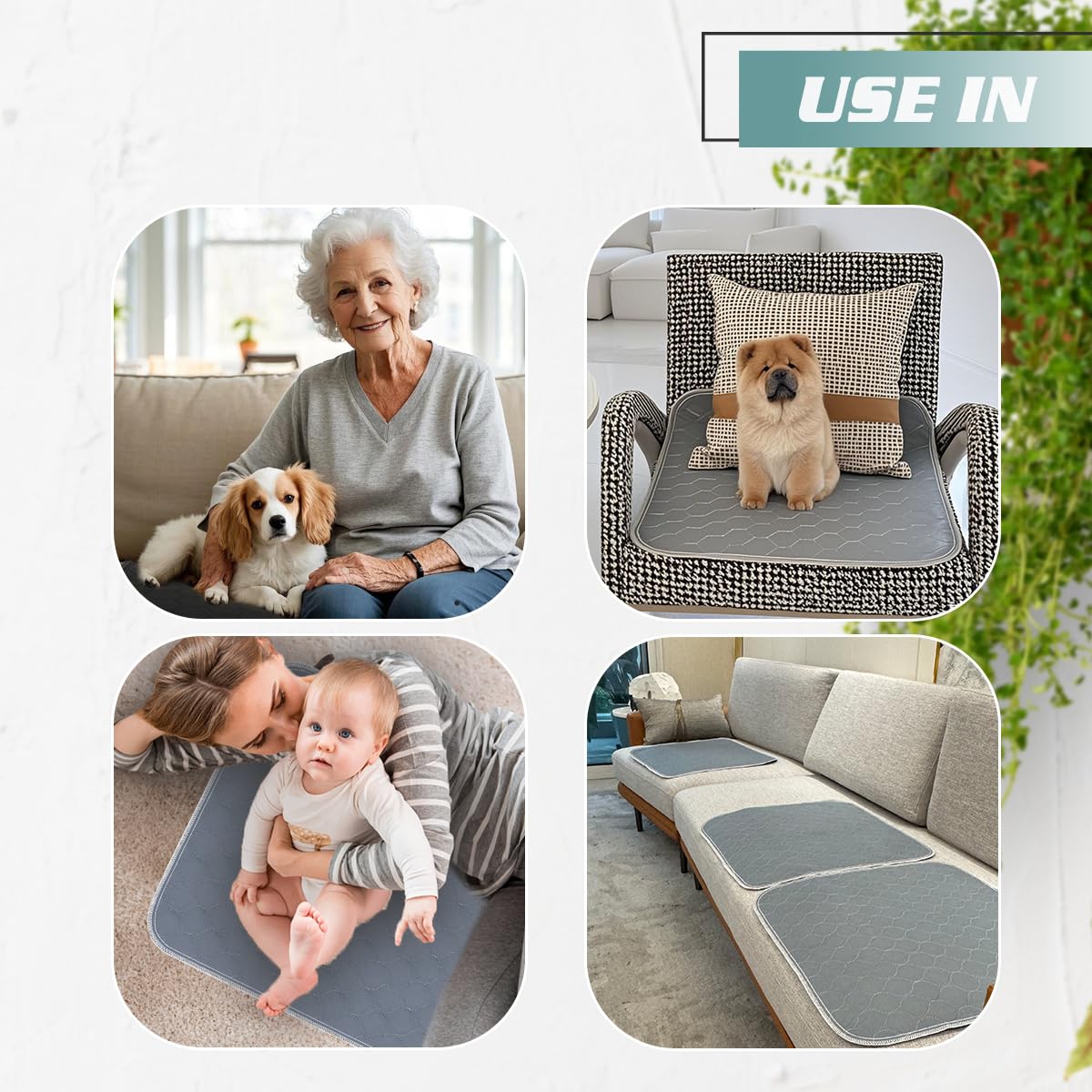 GRUENERDE Set of 4 Washable Incontinence Seat Covers Waterproof Chair Cover Highly Absorbent Durable Chair Pad for Armchairs Chairs Wheelchairs 54x56cm Grey