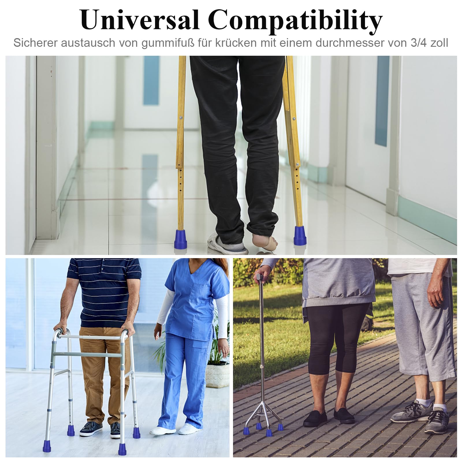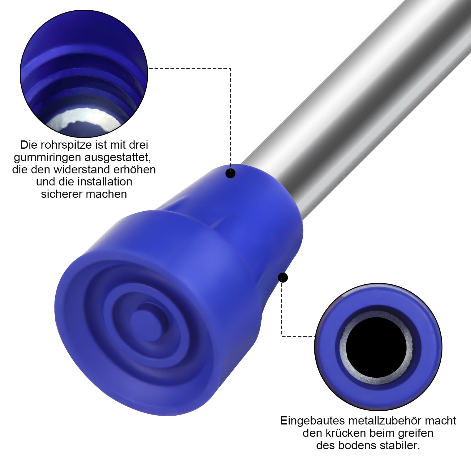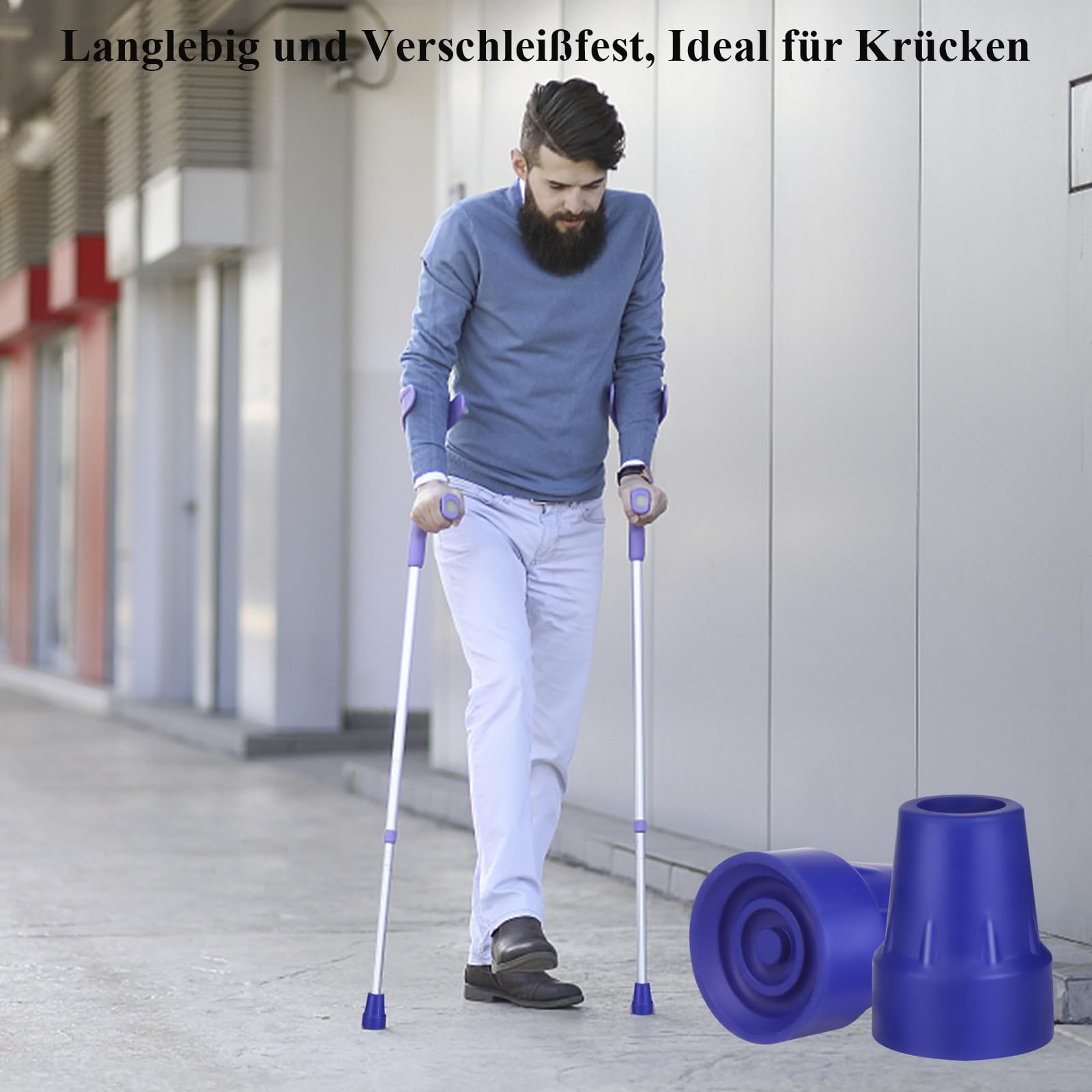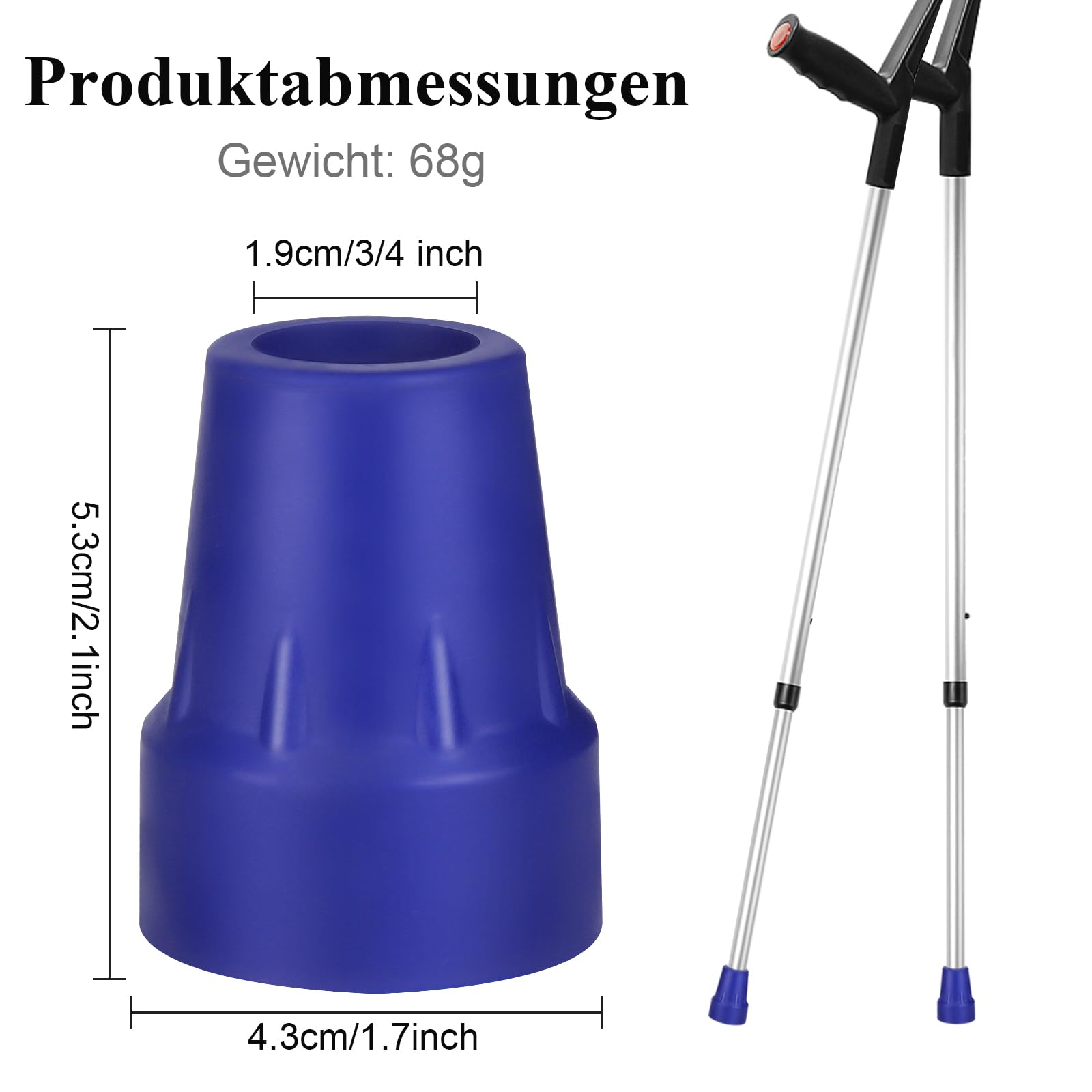 Rubber foot for crutches, non-slip protective caps for walking stick tube tip with metal seal for walking sticks and crutches, 4 pieces (blue)