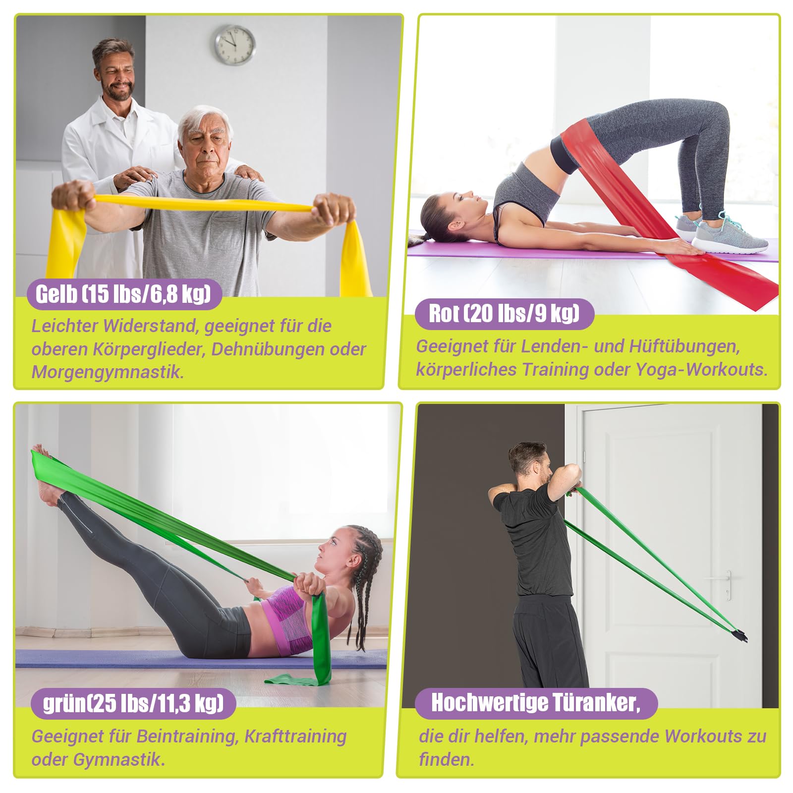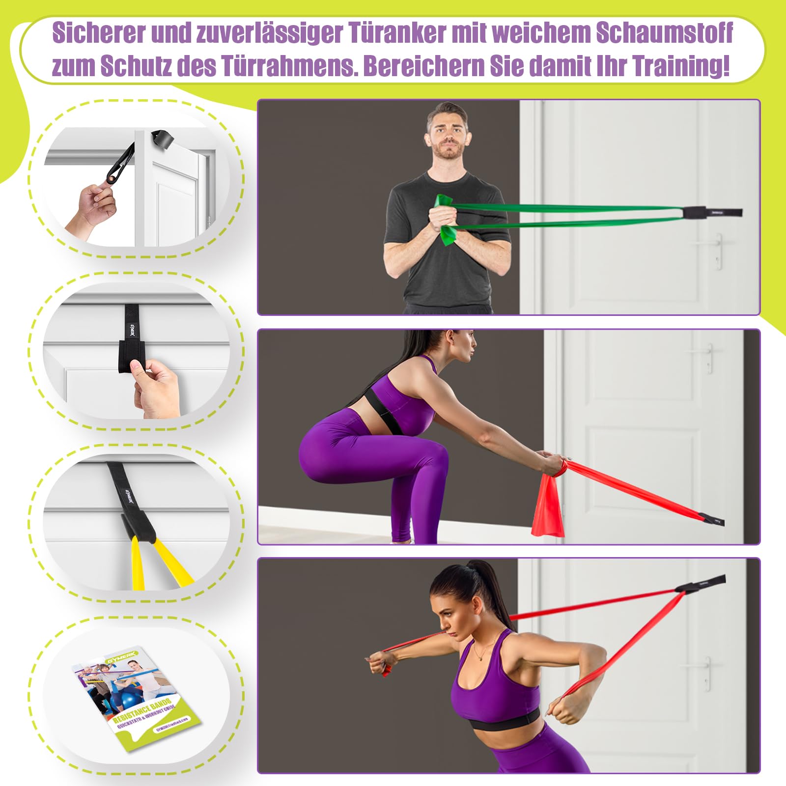 GYMERK fitness bands set of 3, 1.8 m exercise band with 3 resistance levels, fitness band with door anchor, carrying bag and exercise instructions, ideal for yoga, Pilates, strength training and physiotherapy