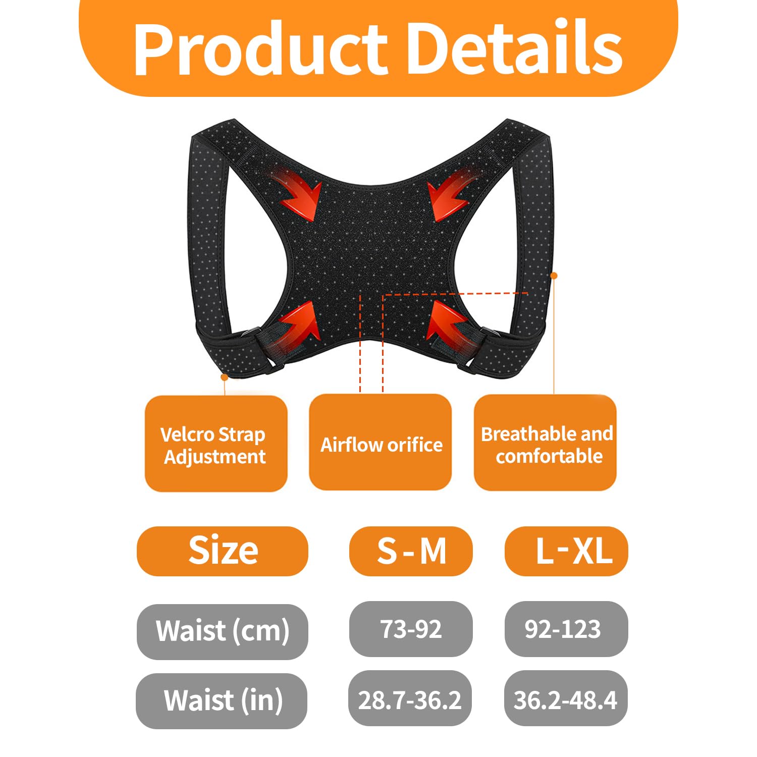 Posture Corrector Back Men Women, Back Support Belt Adjustable and Breathable Back Straightener Prevention of Pain Posture Corrector for Shoulder Strap Posture Correction (L-XL)