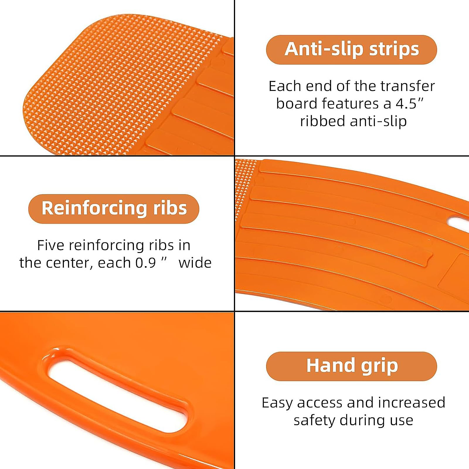 - 【Practical Design】The transfer board is made of smooth material, it has rounded edges with an anti-slip design on the back, which is placed more securely, which increases safety during use and prevents patients from falling and getting injured.