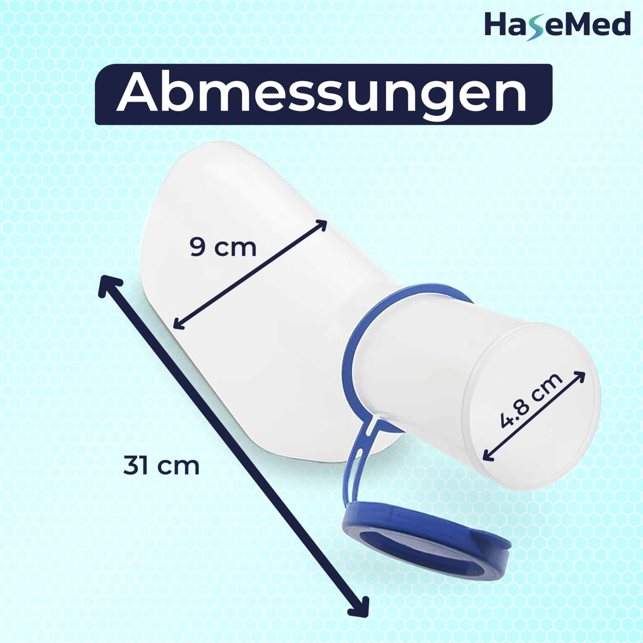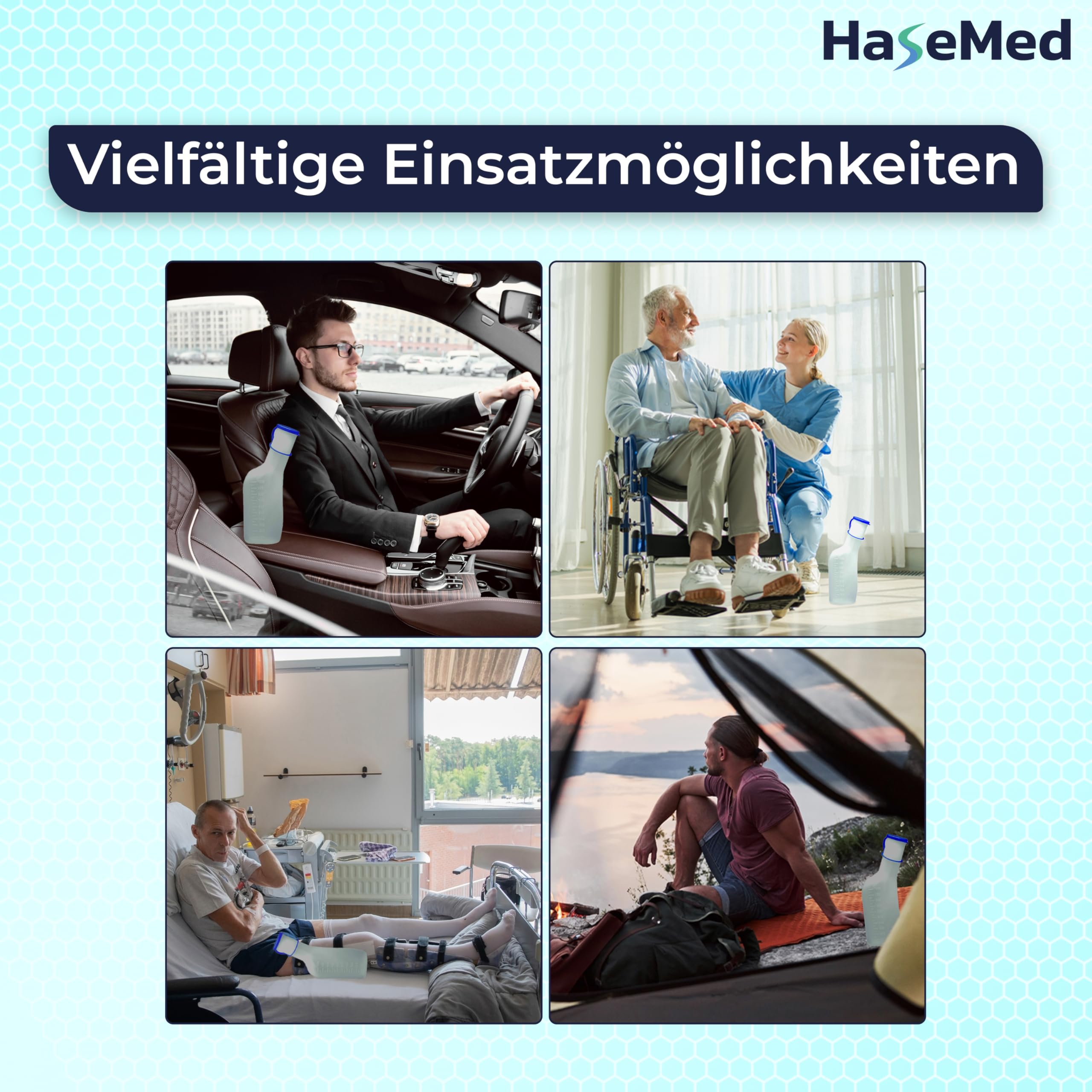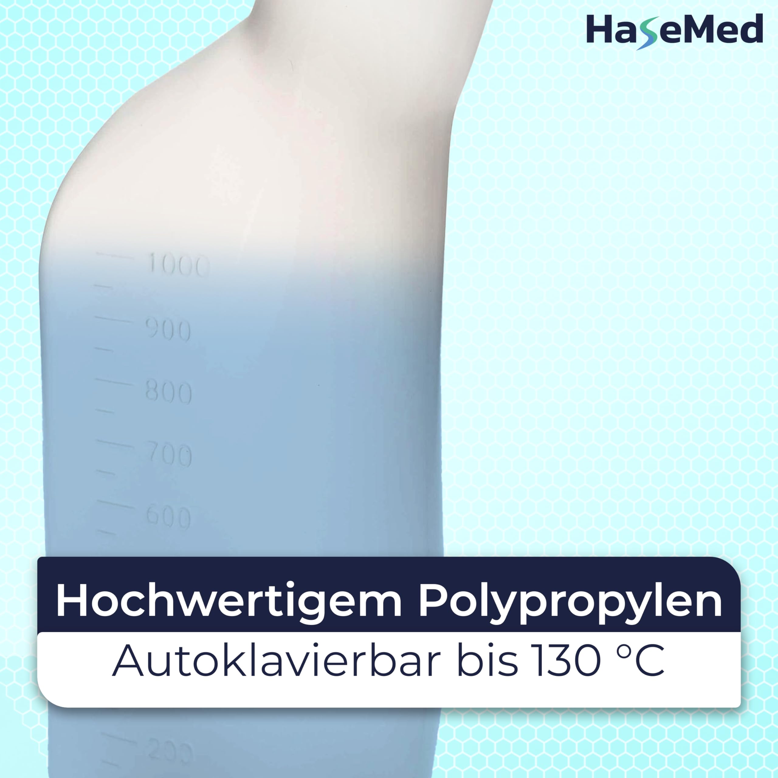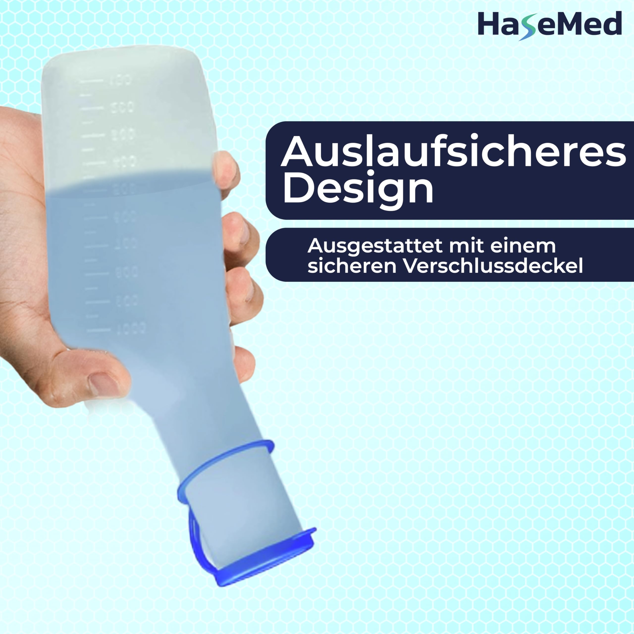 HaseMed Urinal Bottle for Men - 1000 ml, with Lid, 1 Piece | Autoclavable up to 130 °C, made of polypropylene, leak-proof & hygienic - ideal for nursing, hospital & travel