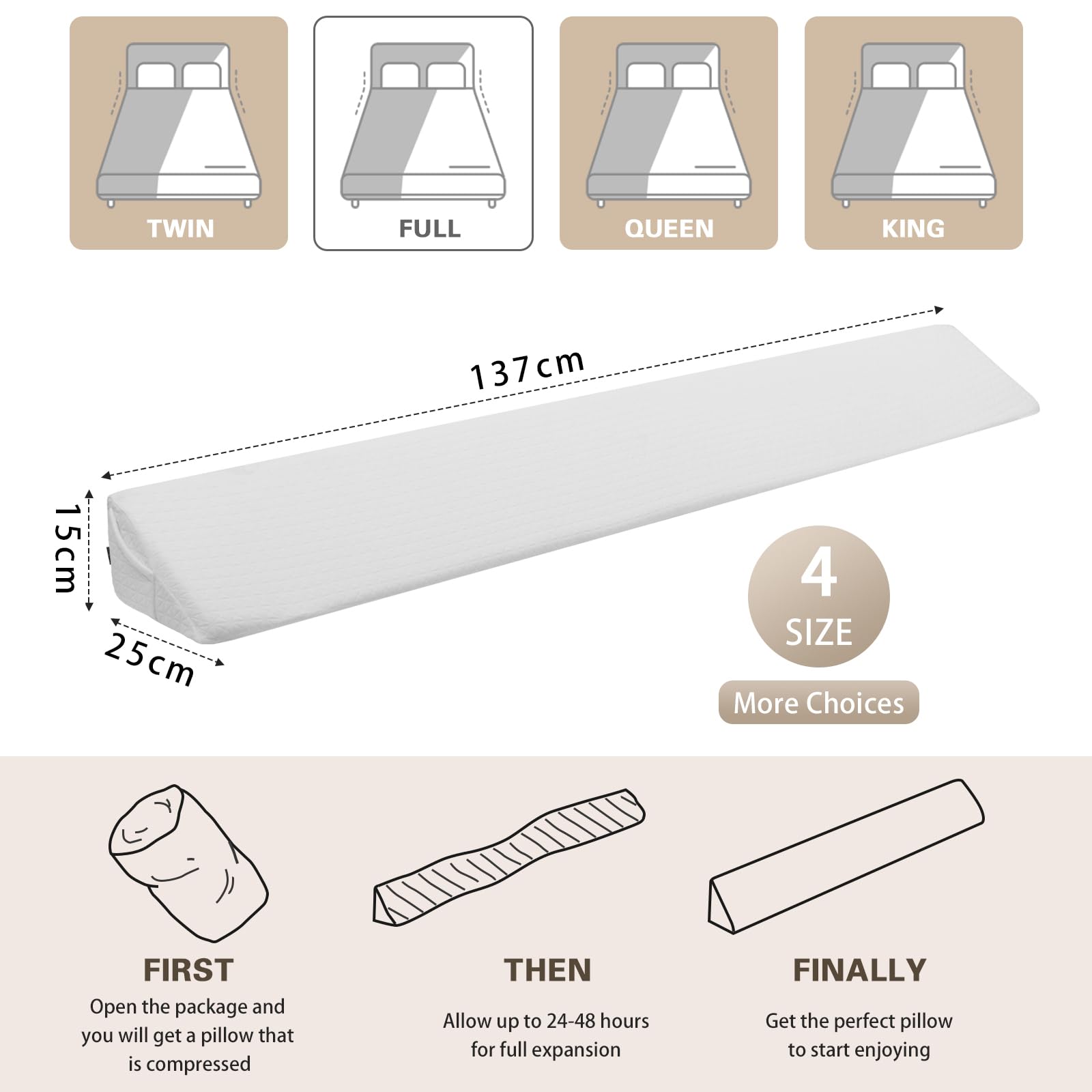 HAVARGO FULL SIZE Bed Wedge Mattress Wedge Pillow Gap Filler, Pillow to Fill the Gap Between Headboard and Mattress (137 x 25 x 15 cm)