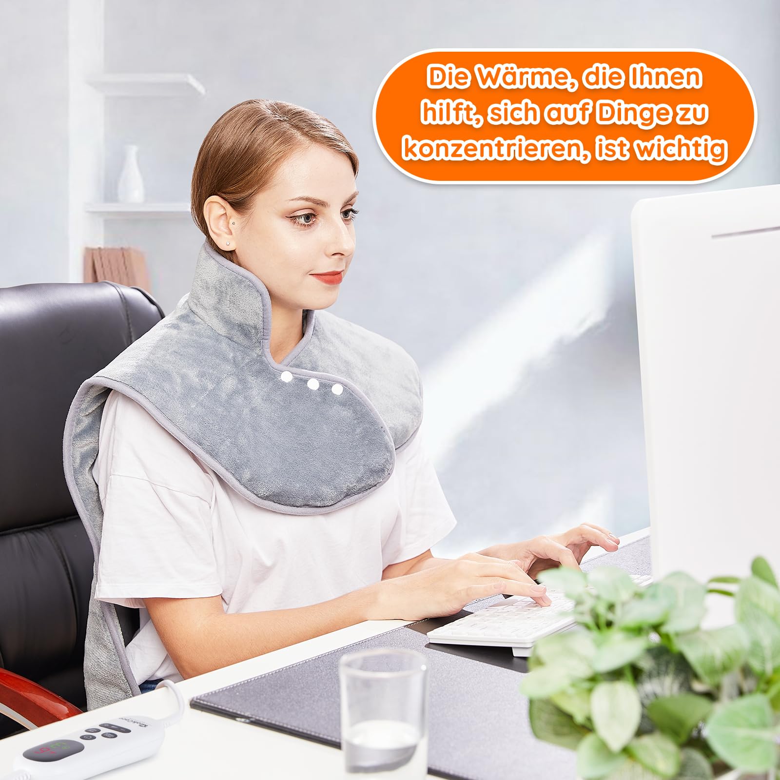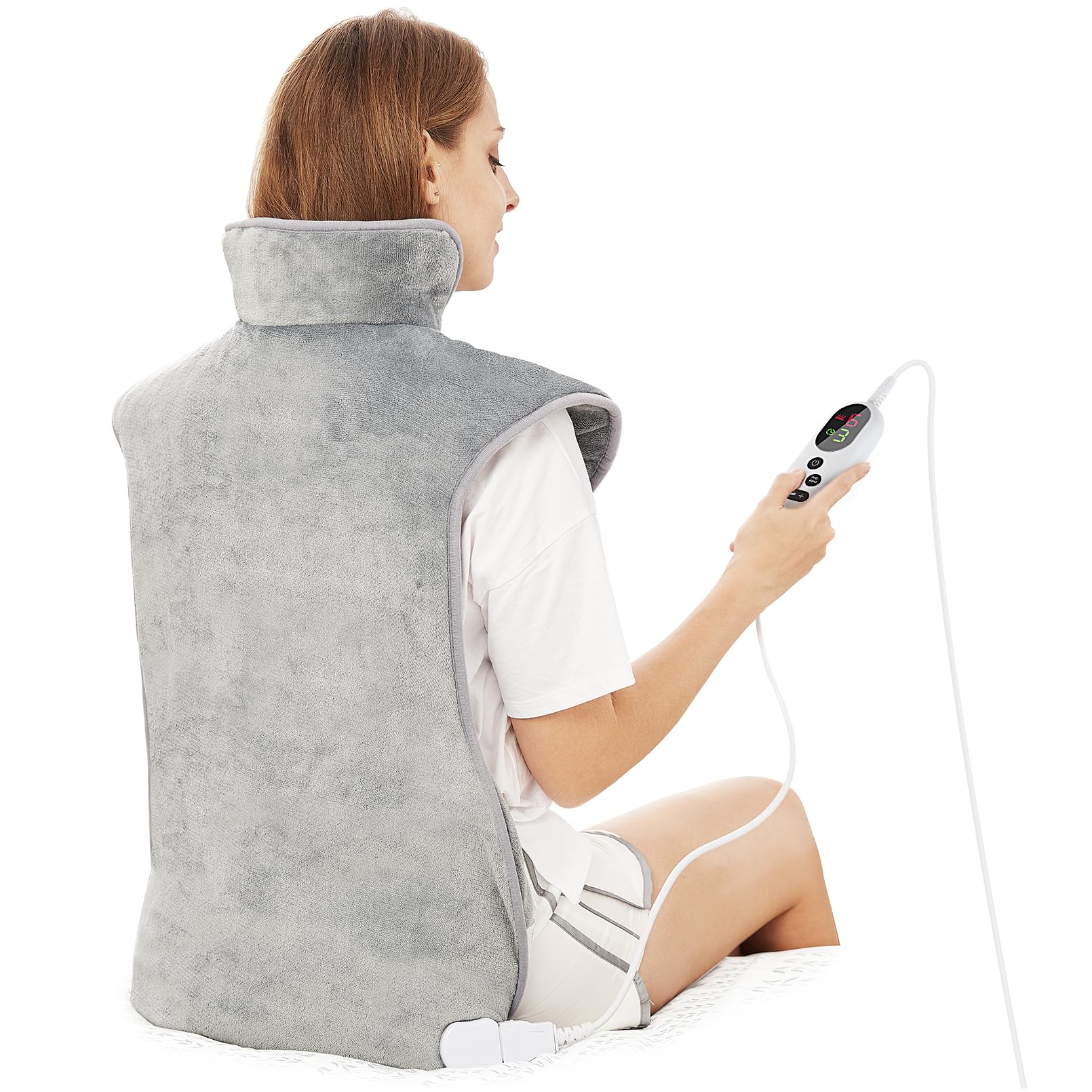 Heating pad for back, shoulder, neck 60x100cm heat pad with automatic switch-off, quick heating, with waist strap, back warmer heating blanket 6 heat settings, auto-off timer, flannel material, washable