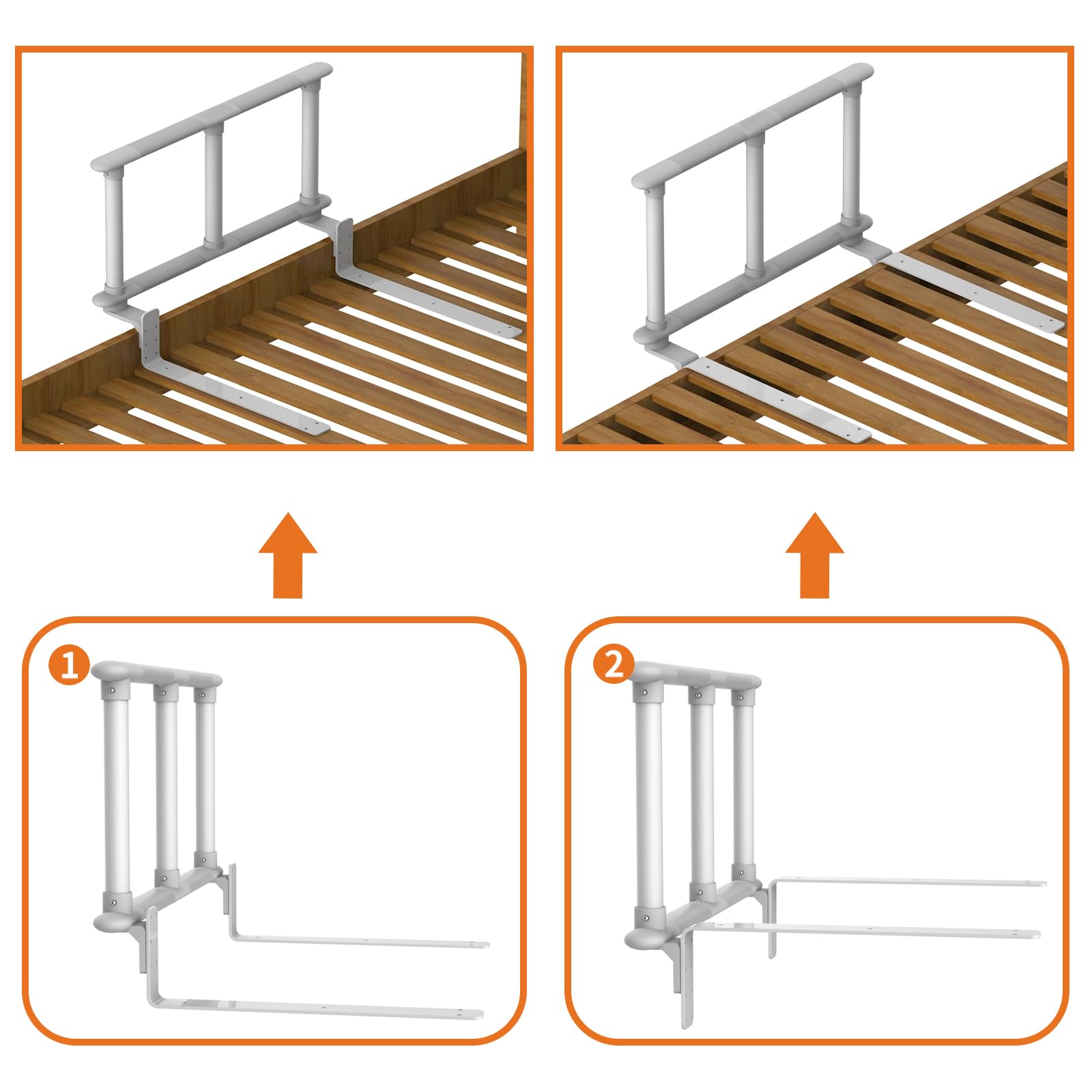 Heuffe bed rail fall protection for seniors, bed grab bar, standing aid for older adults, safety bed railing, height-adjustable bed guard rail, nursing bed for the disabled (three-bar railing)