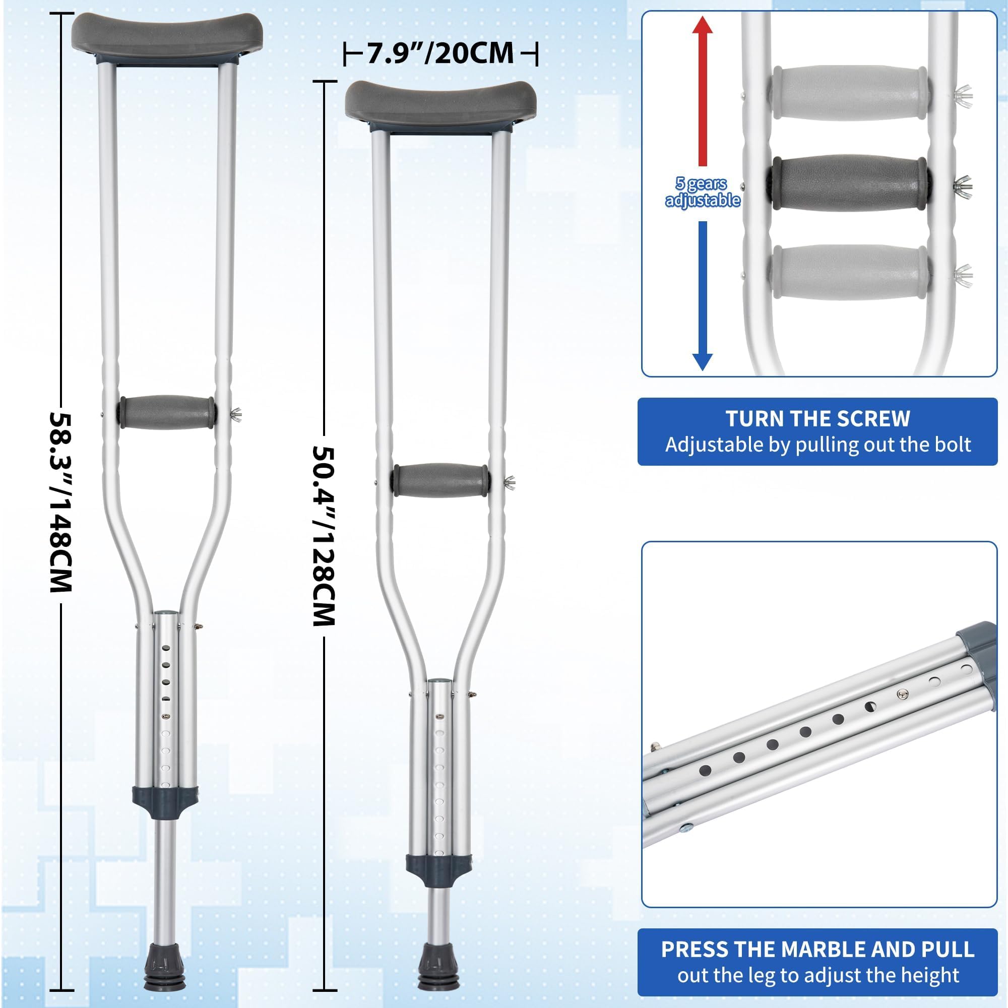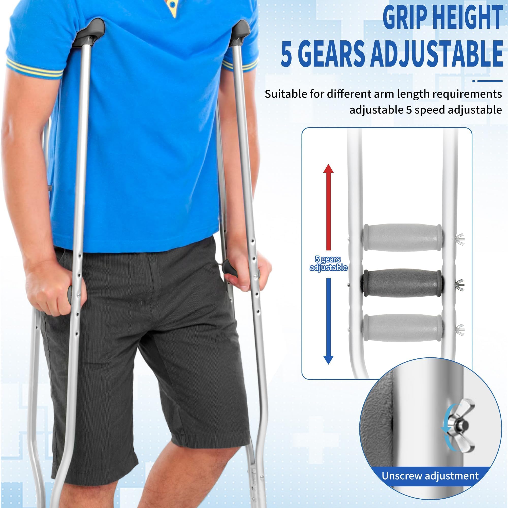 ERGONOMIC DESIGN: Comfortable and height-adjustable crutches for maximum support.