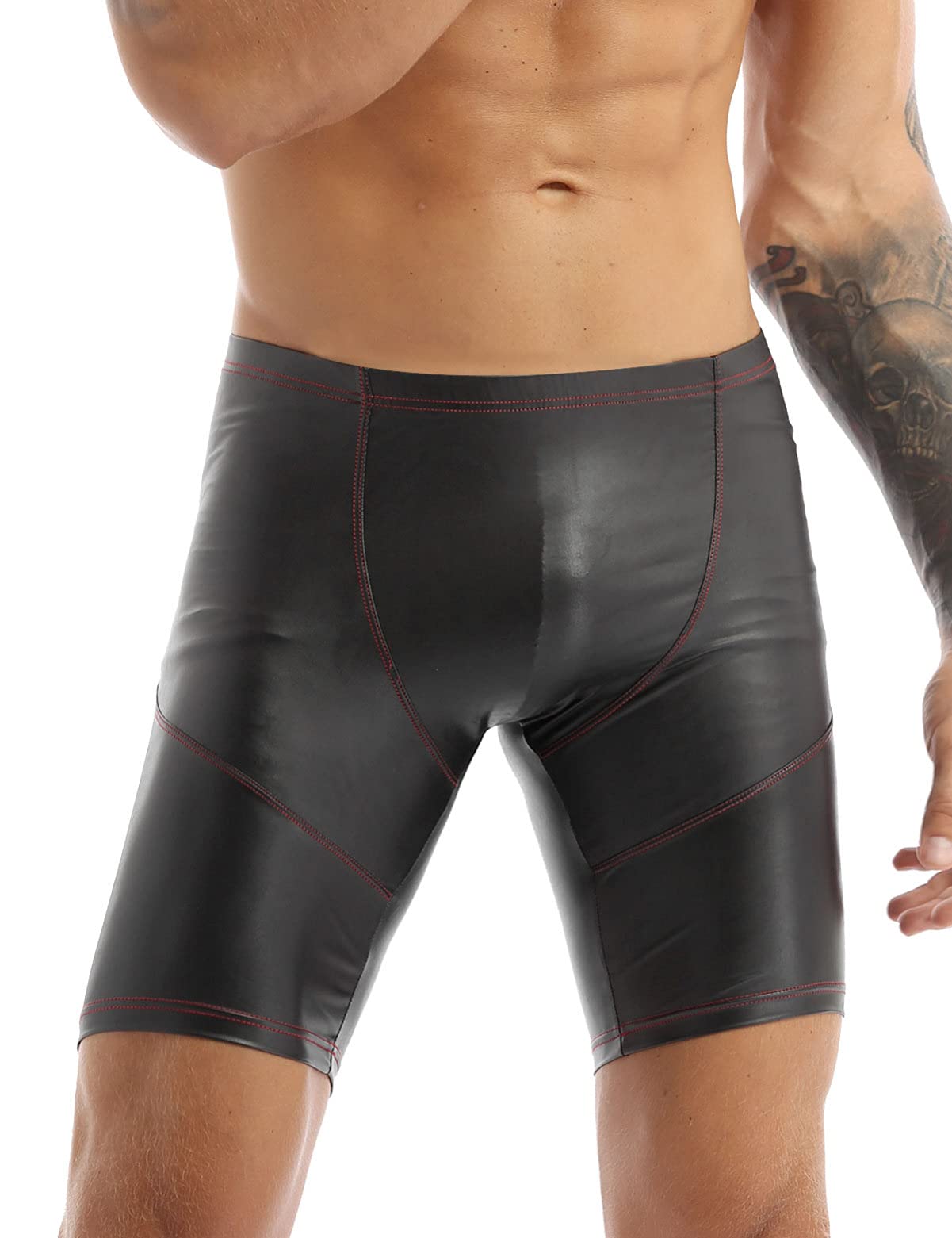 iEFiEL Men's Boxer Shorts Underpants Briefs Pants Hipster Patent Leather Wetlook Men's Underwear Black ML XL XXL Black XXL