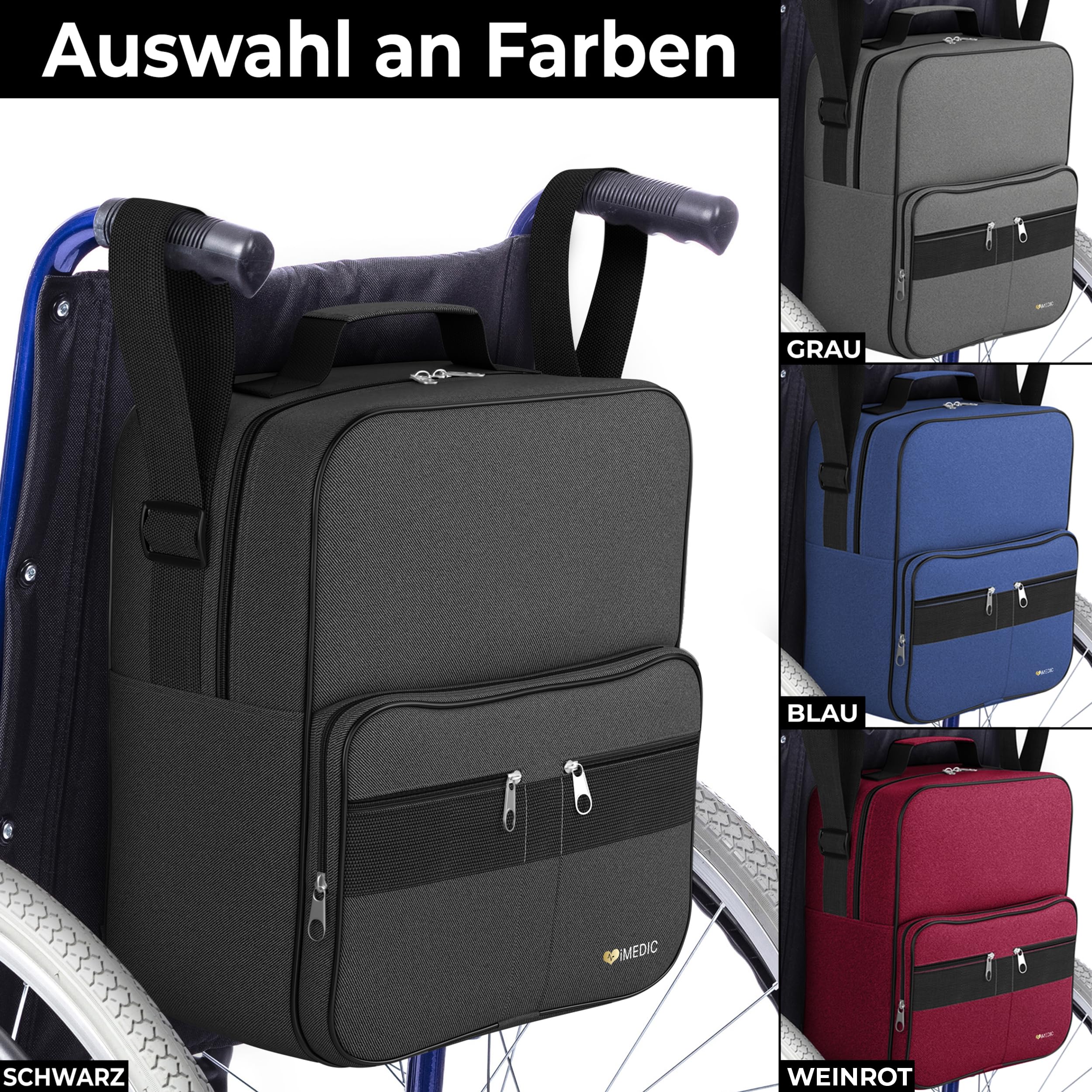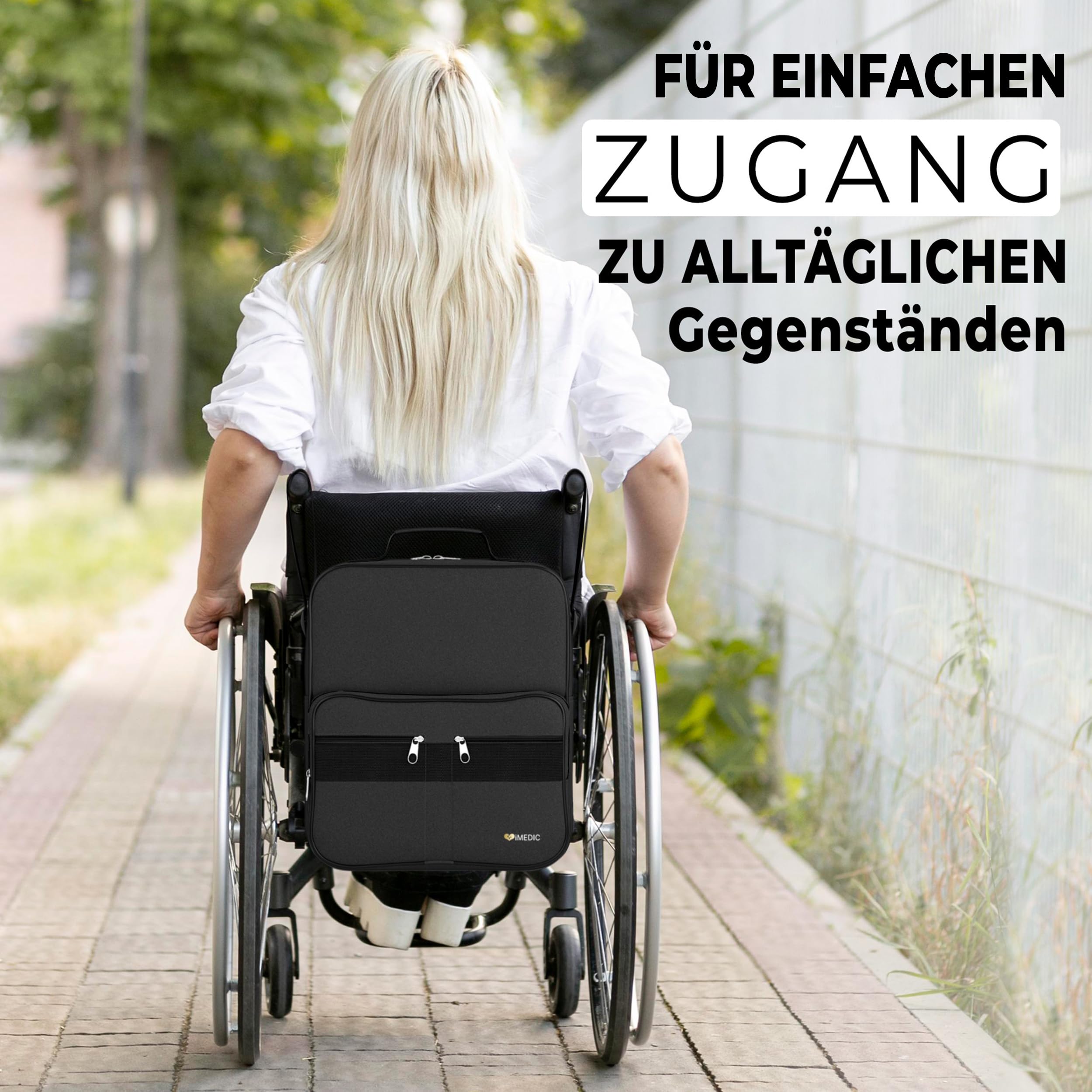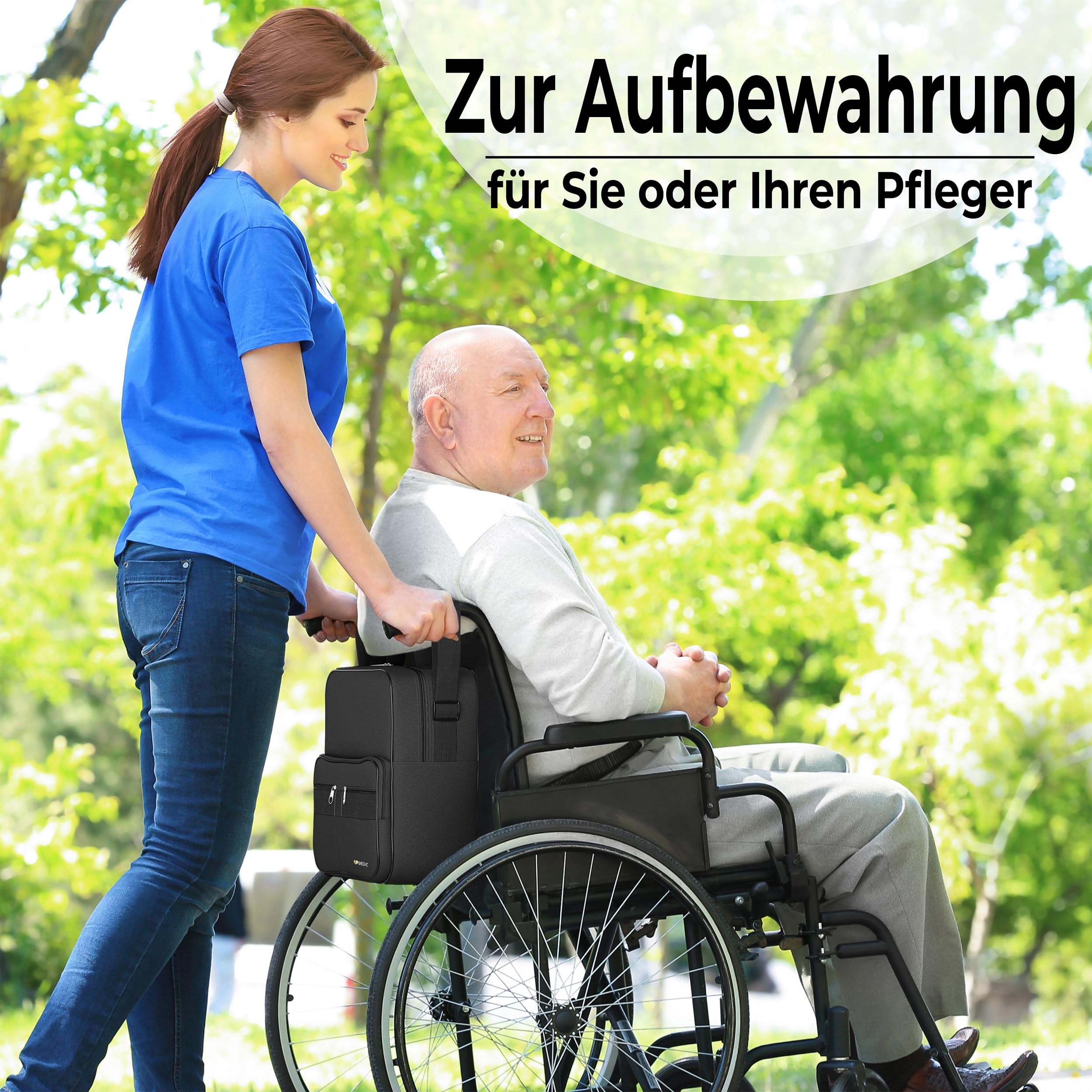 - WHAT'S INCLUDED: 1 bag that fits snugly on the back of a wheelchair, measuring: H37 x W33 x D18 cm (14 x 13 x 7 inches); This means it won't stick out or get in the way of you or your caregiver