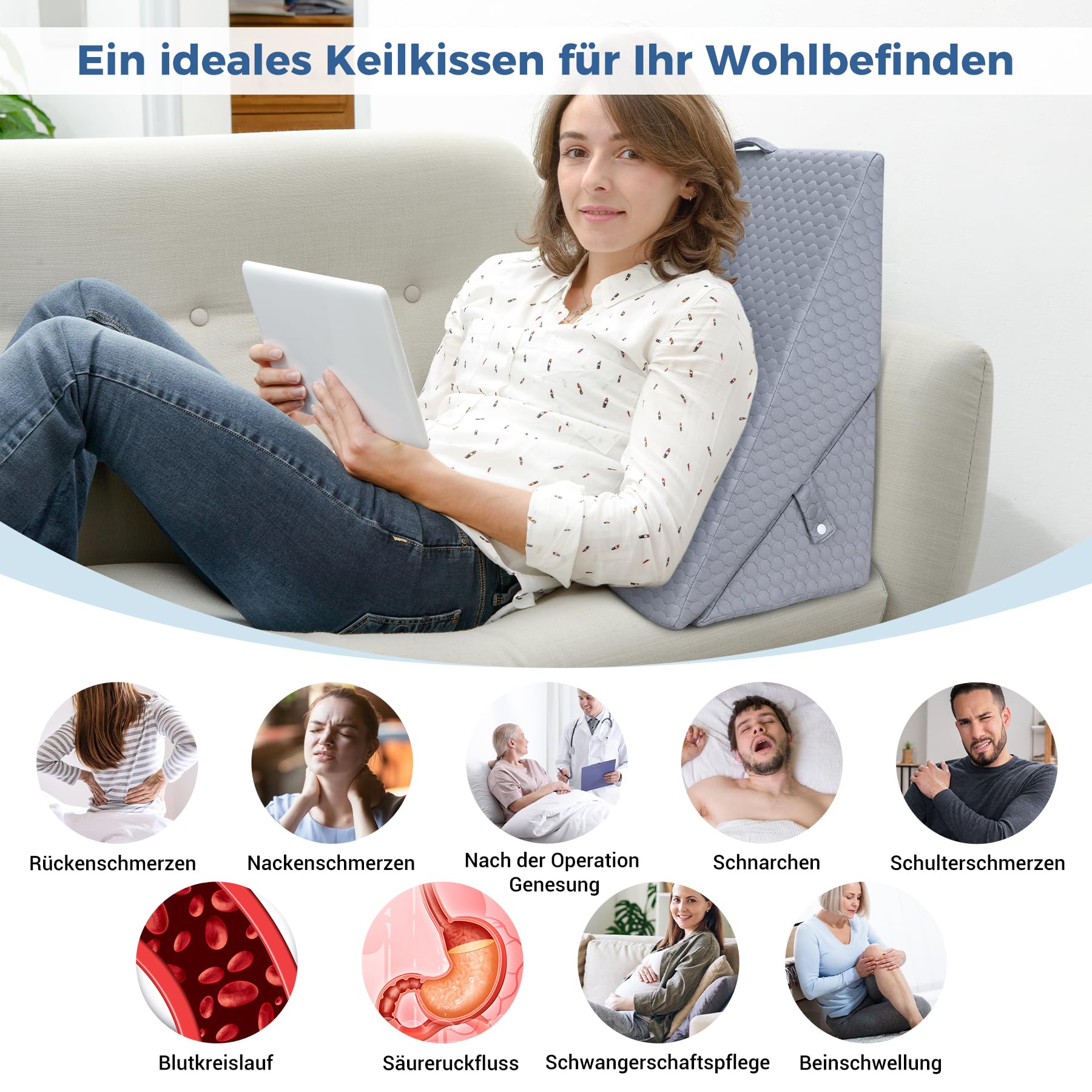 - 【Friendly Design for Pain Relief】The supportive and elevated post-surgery wedge pillow helps reduce snoring, relieve back and leg pain, acid reflux, and breathing problems, and improve blood circulation and overall health. Ideal wedge pillows for post-surgery and sleep apnea patients, providing you with a more comfortable night's sleep.