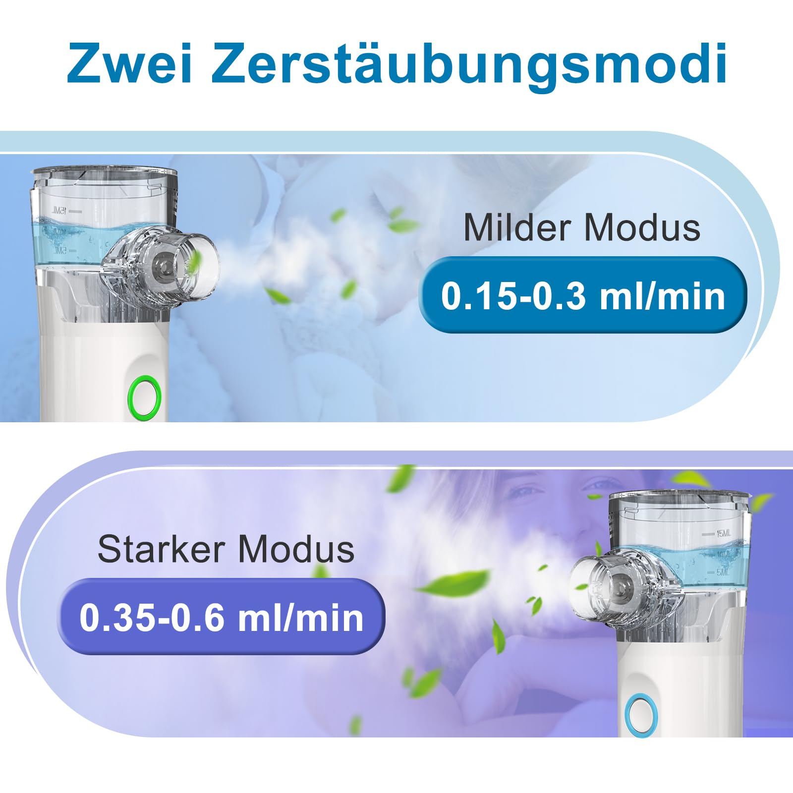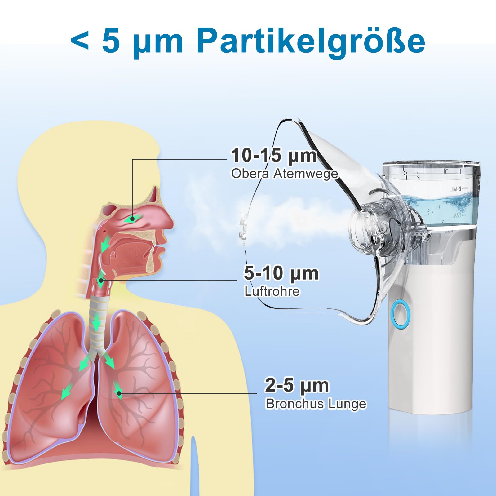 - 【Highly Efficient Nebulization】The portable nebulizer uses ultrasonic technology to generate mist particles smaller than 5µm, which can quickly reach the respiratory tract and lungs, making the solution easier to absorb. The special design of this silent aerosol minimizes solution residue and thus waste. Thanks to the unique components, this nebulizer is easily washable and ready for subsequent use.