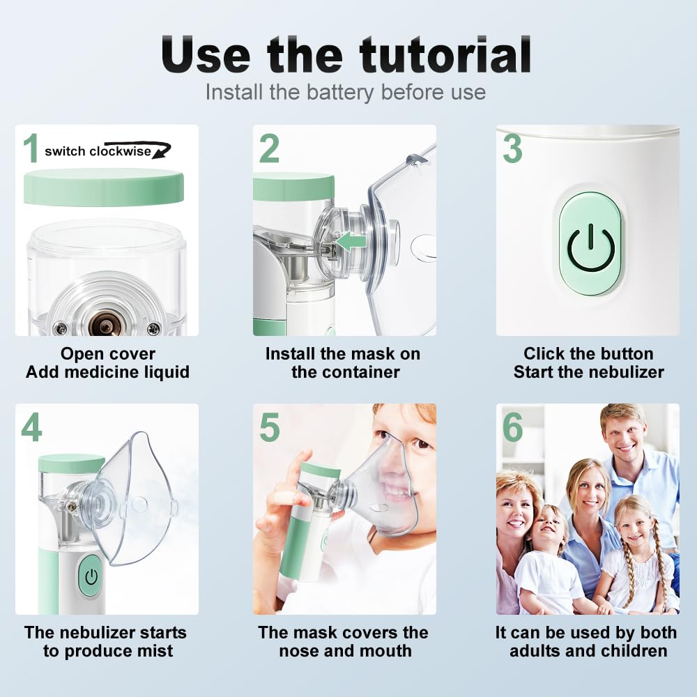 Nebulizer Machine for Adults, Rechargeable Portable Nebulizers for Adults and Children, Quiet Nebulizer for Children (Green and White)