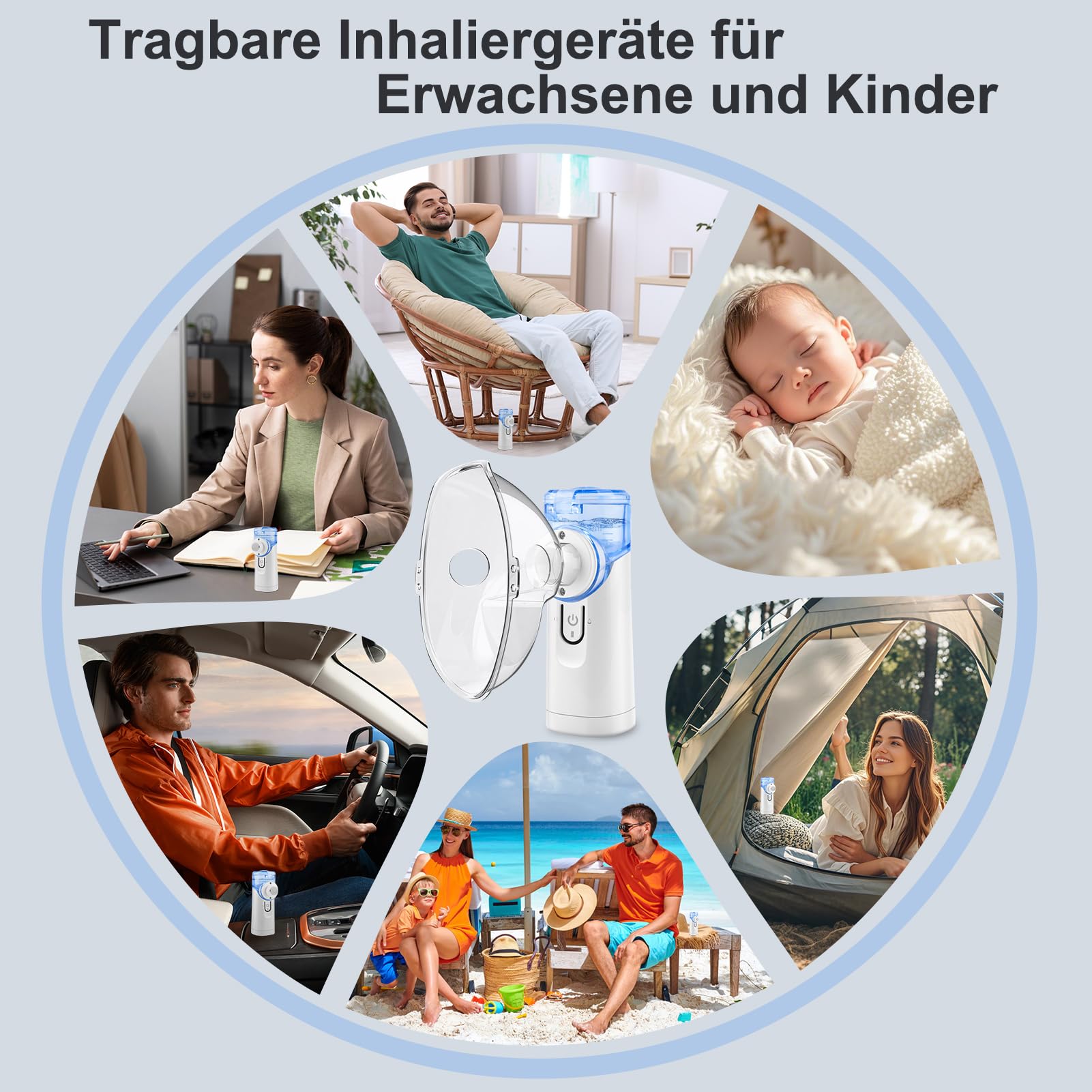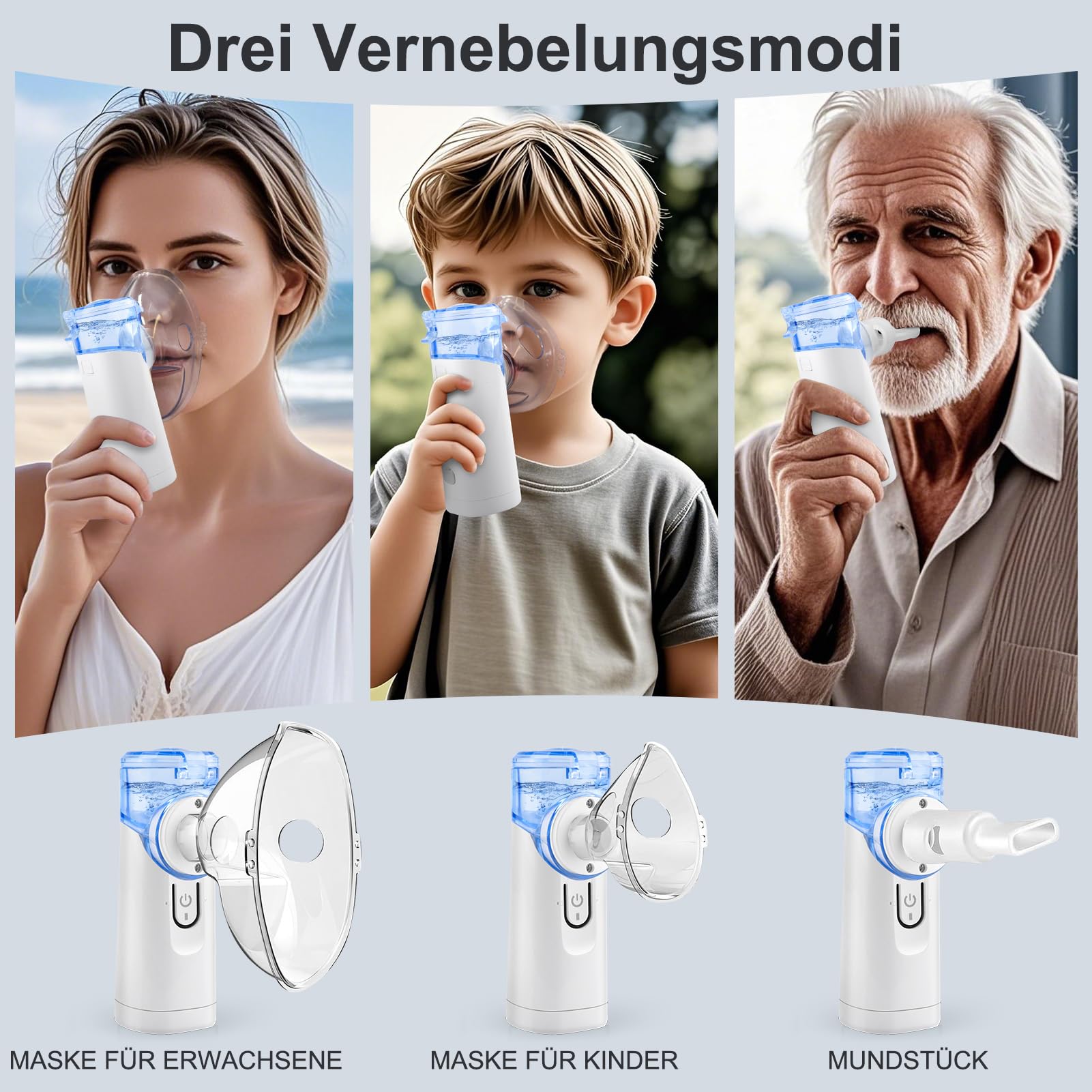 Inhaler, inhalation device portable nebulizer set, low-noise inhaler with mouthpiece, inhaler nebulizer for children and adults, inhaler with mouthpiece, USB-C rechargeable - blue