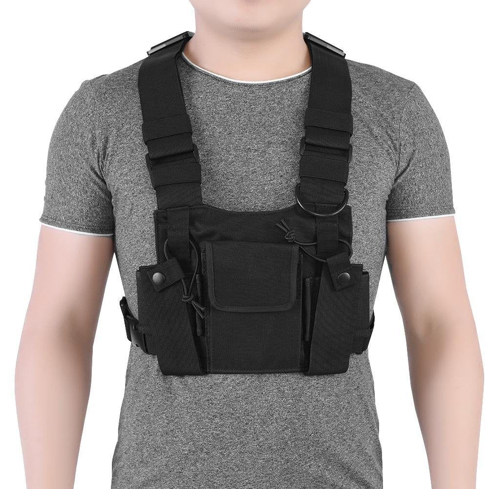 - 1、FUNCTION: A lightweight and practical walkie-talkie chest pack with a universal pocket for most radios on the market, ideal for carrying special spare battery bottles, walkie-talkies and other small items, keeping your hands free.