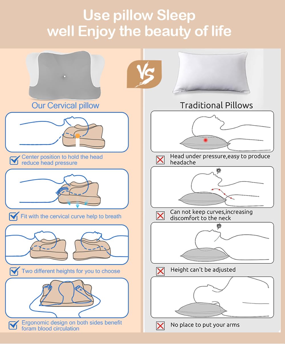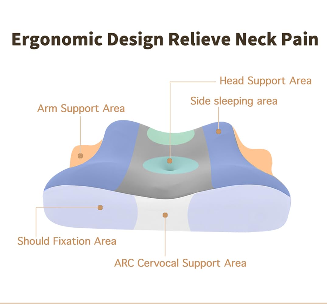 - 【Versatile Support for Any Sleeping Position】The Jocoiot neck pillow is suitable for any sleeping position. With two height options on both sides, you can choose the contour that best suits your body type and preferred sleeping position. The pillow's unique hollow center and ridges not only reduce pressure on the ears for side sleepers but also provide a comfortable place for your arms, preventing stiffness and numbness.