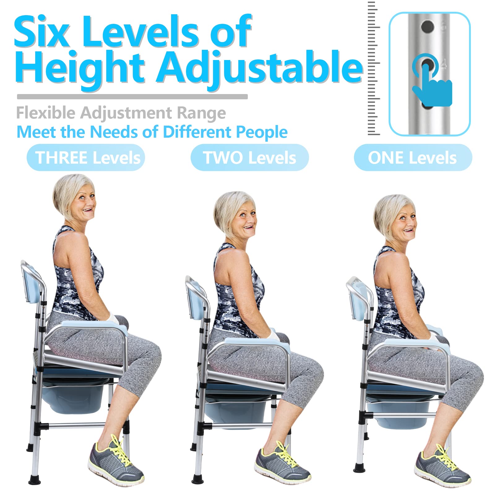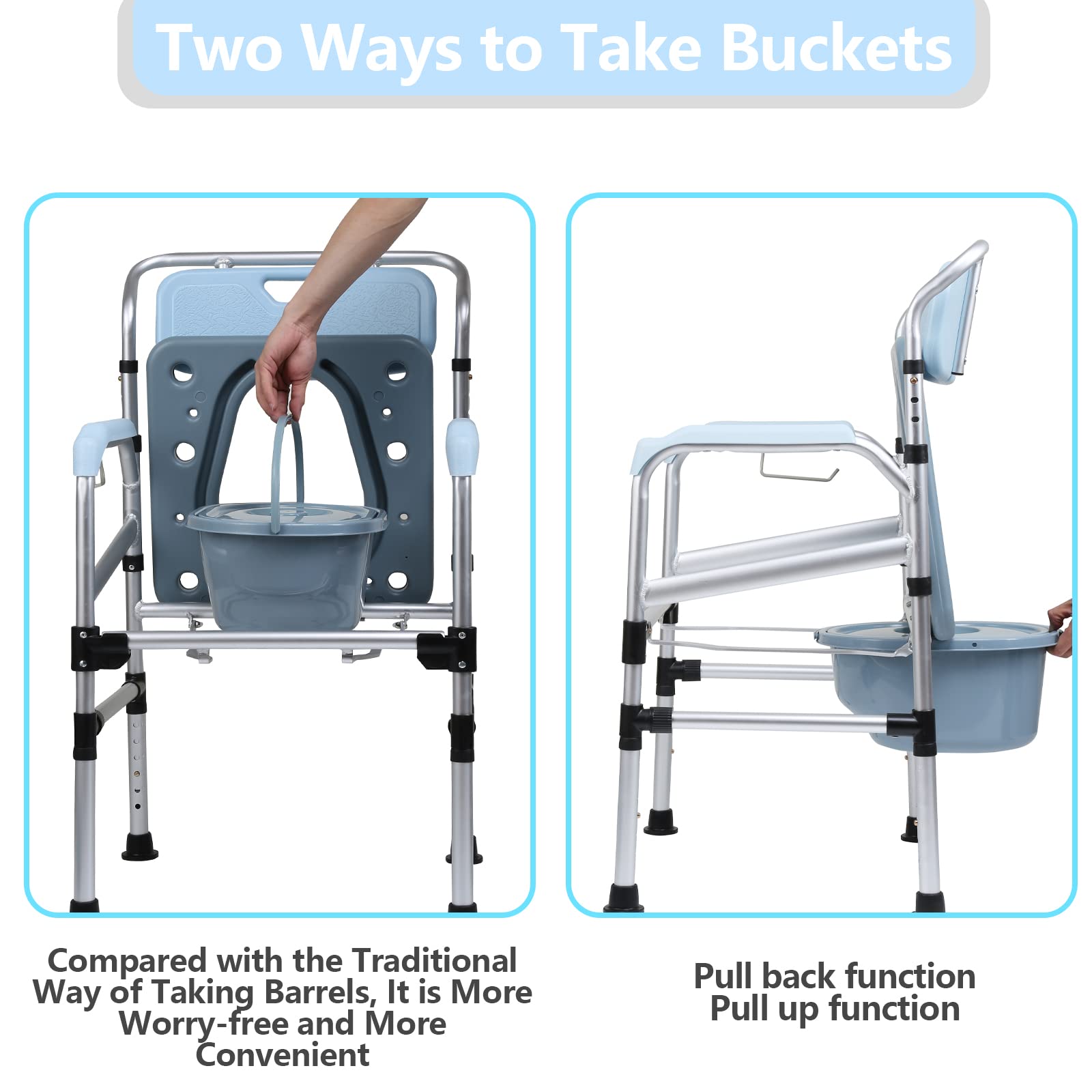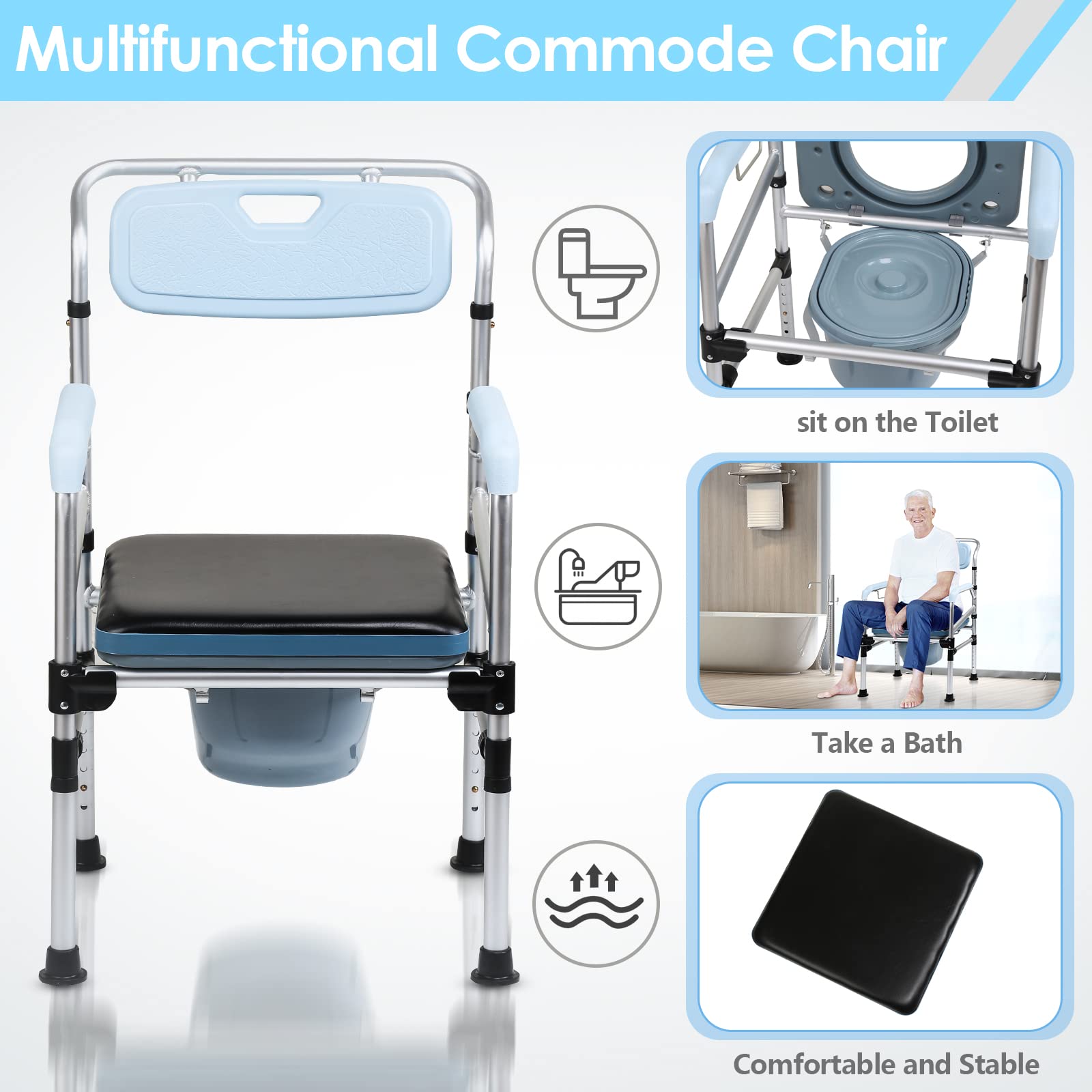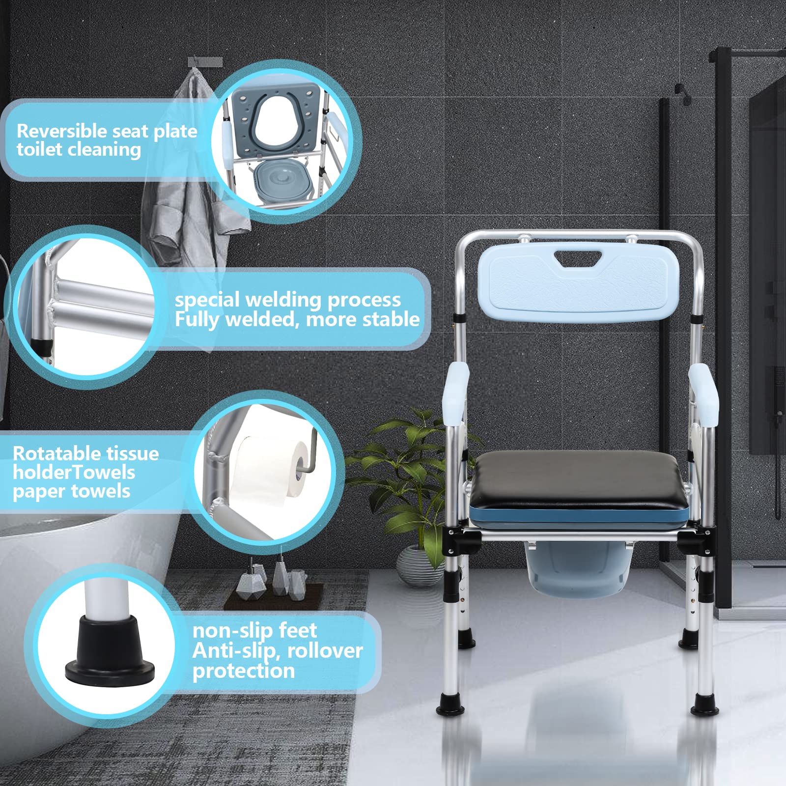 Jopassy Commode Chair, Commode Chair for Seniors with Armrest and Backrest, Height-Adjustable Shower Stool with Toilet Bucket for the Elderly, Children and Pregnant Women (Load Capacity up to 160 kg)