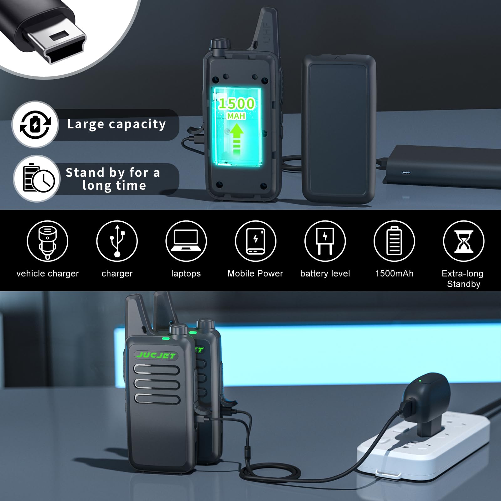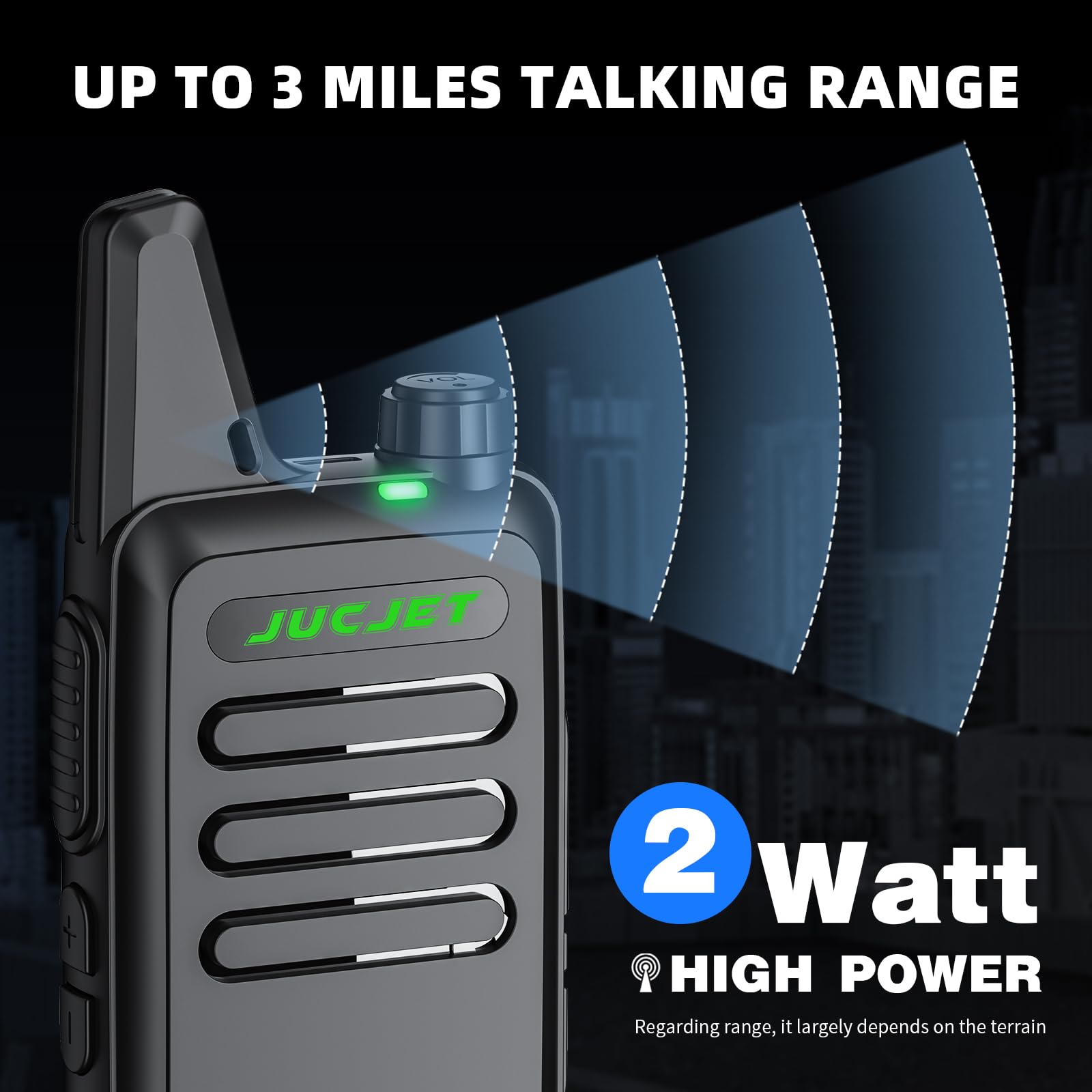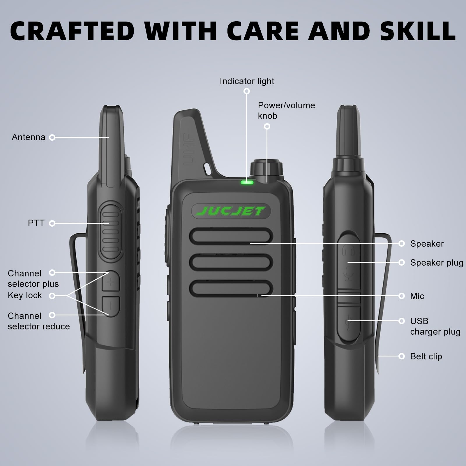 JUCJET T20 Rechargeable Two-Way Radio for Adults, Outdoor Mini Walkie Talkies with 16 Channels, VOX Squelch, License-Free PMR Radio (2 Pack)