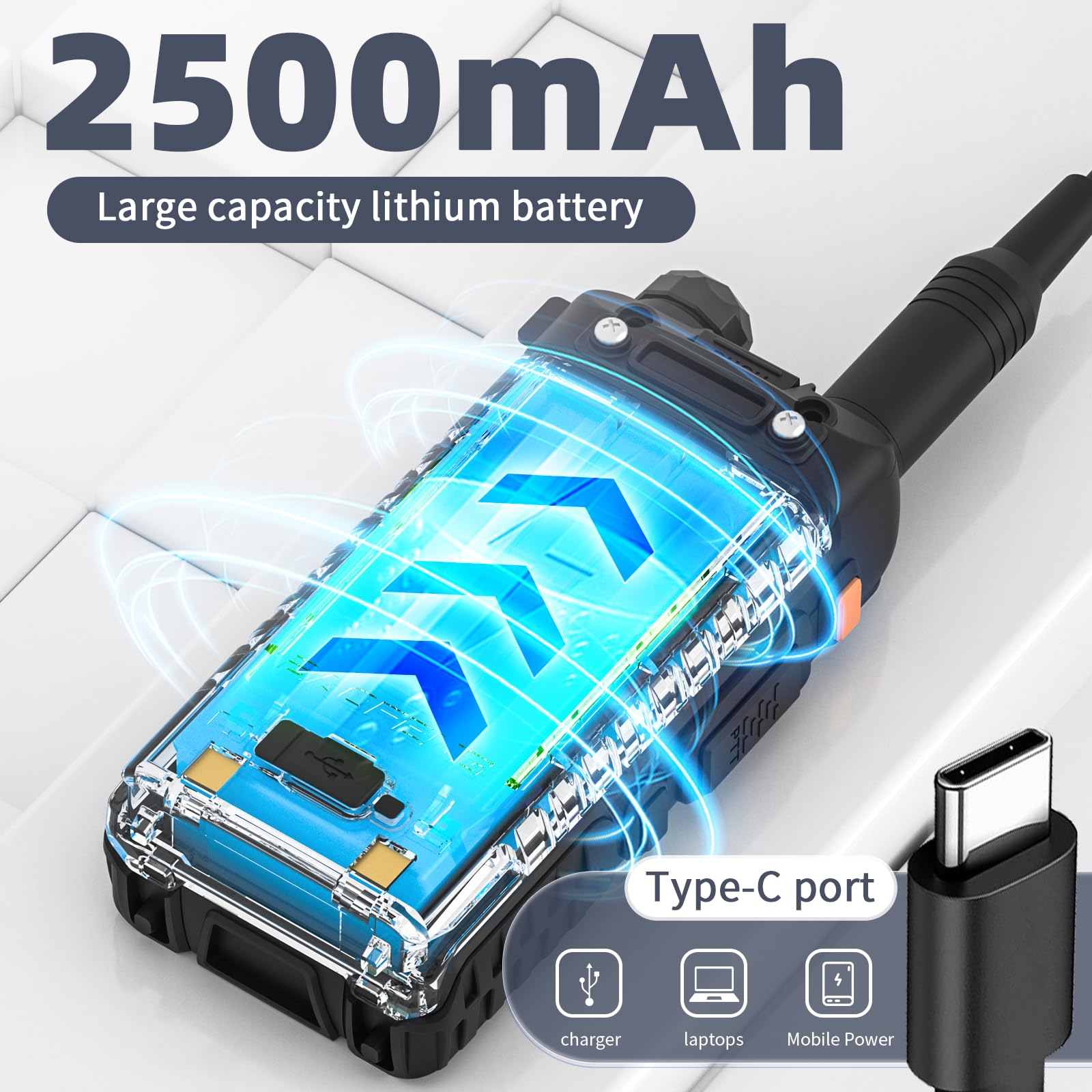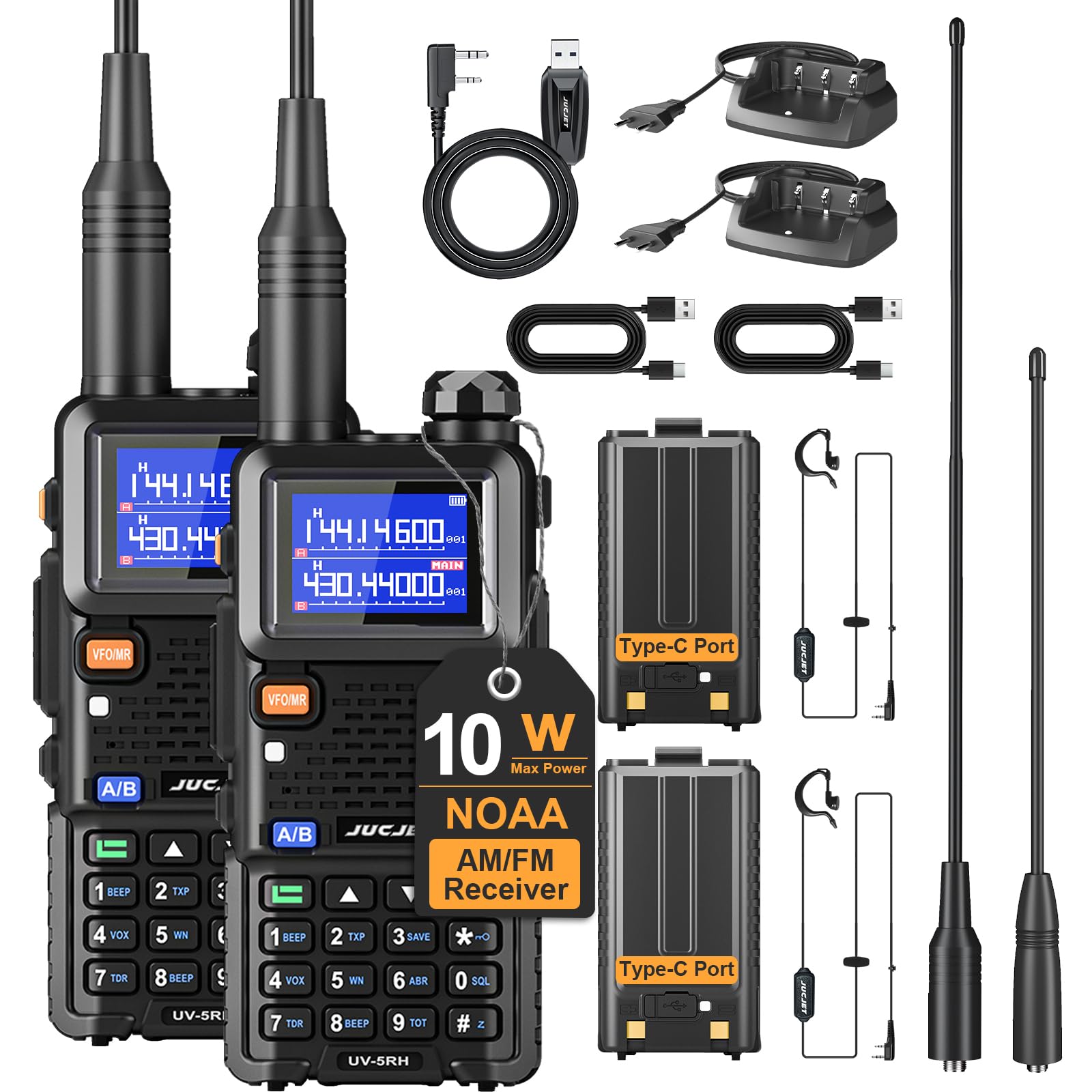 JUCJET UV-5RH Multi-Frequency Walkie Talkie, 999 Channels, Flashlight, Type-C USB Charging Station, High-Performance Walkie Talkie for Adventure, Outdoor, Camping, Family (2 Pack)