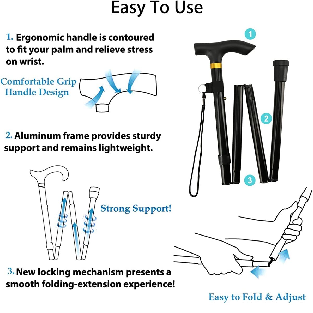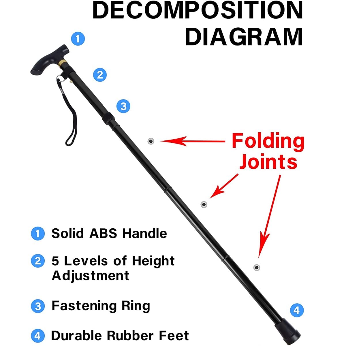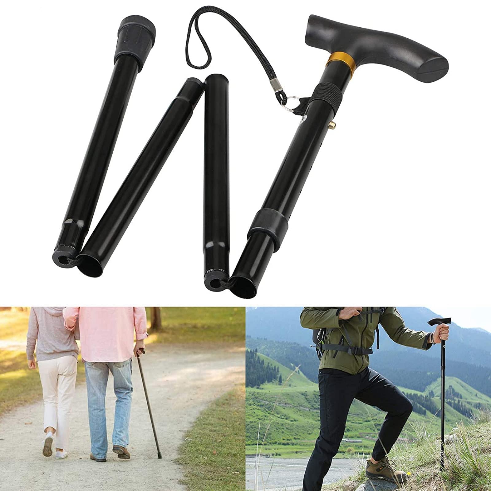 Folding aluminum walking stick, portable walking stick, hiking sticks, foldable walking stick 4 sections aluminum alloy walking stick for hiking camping mountaineering trekking (black)
