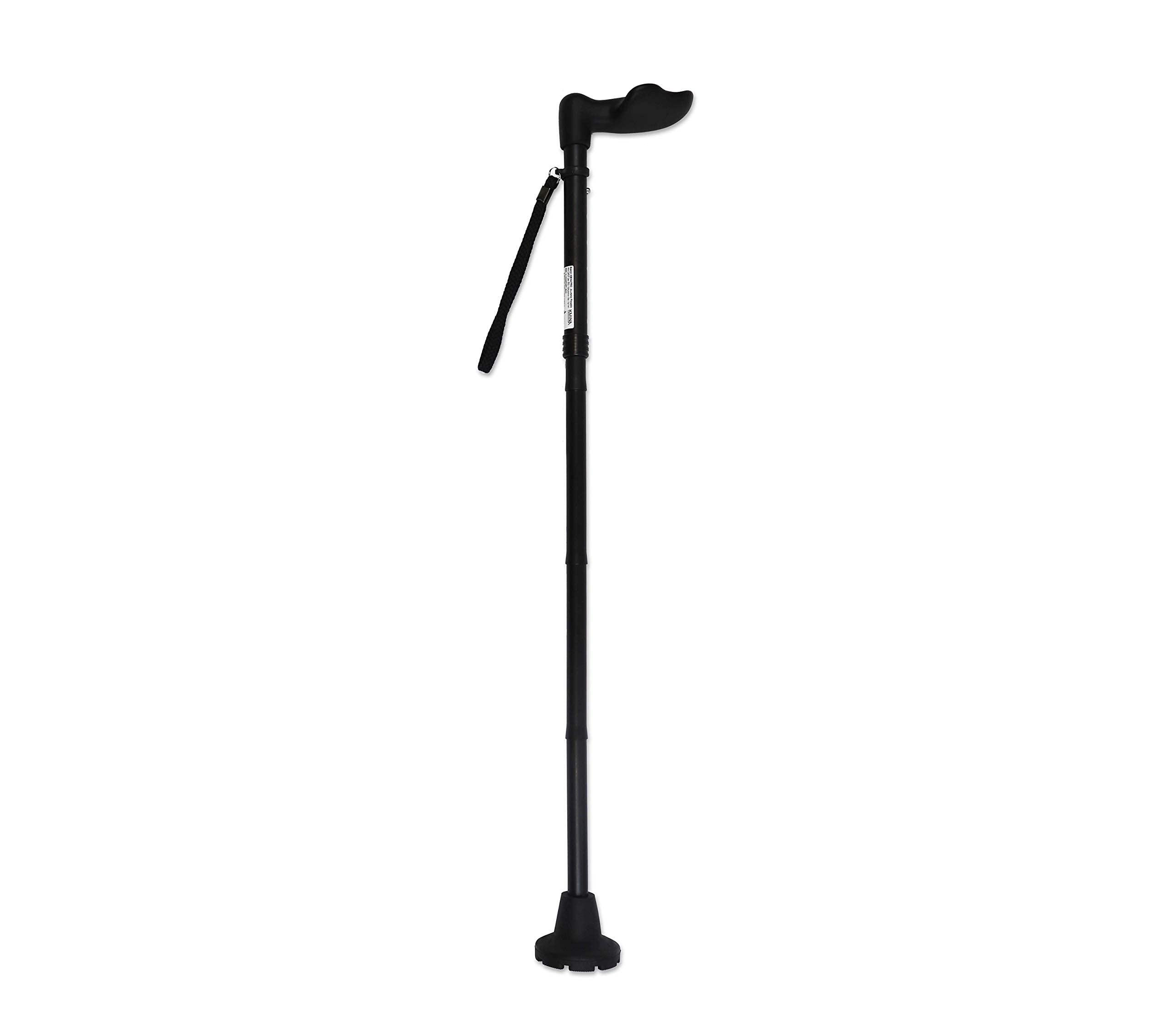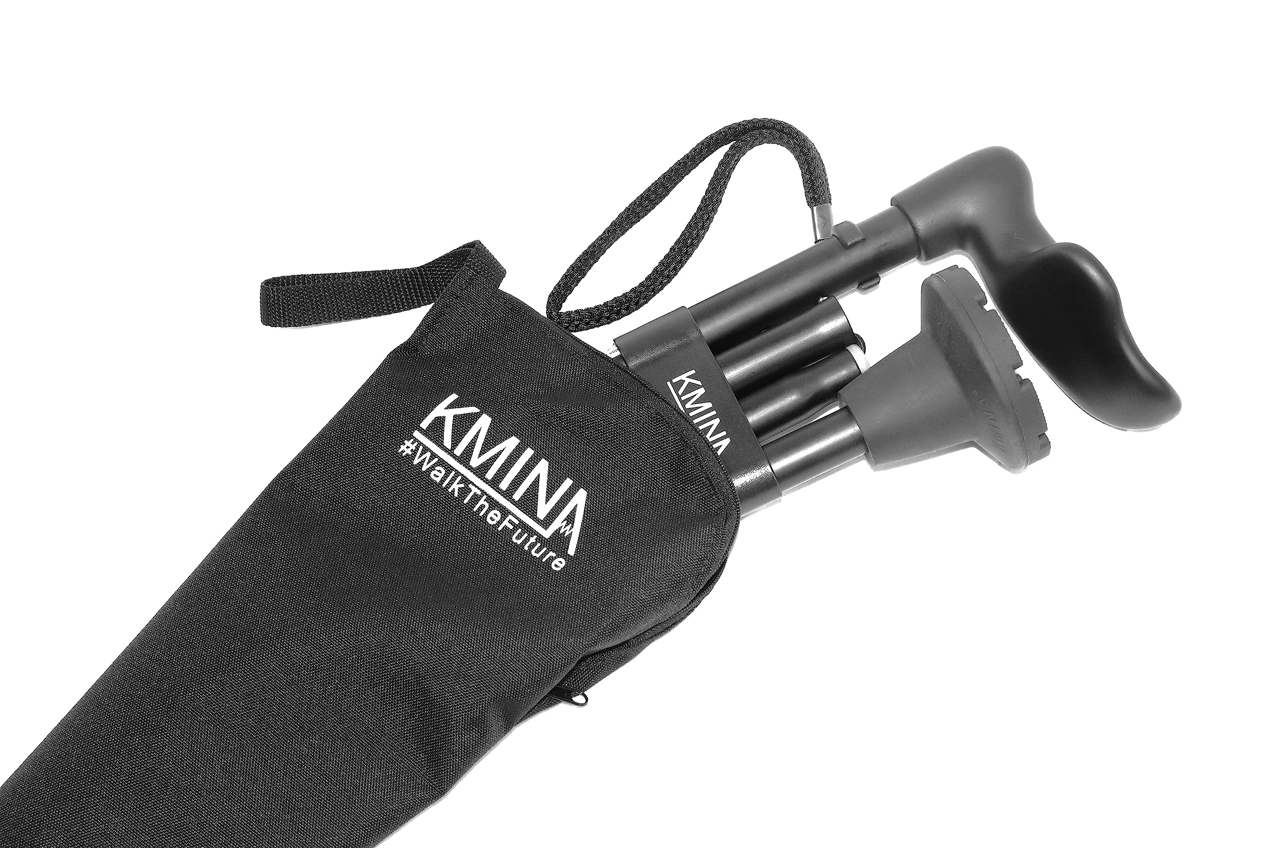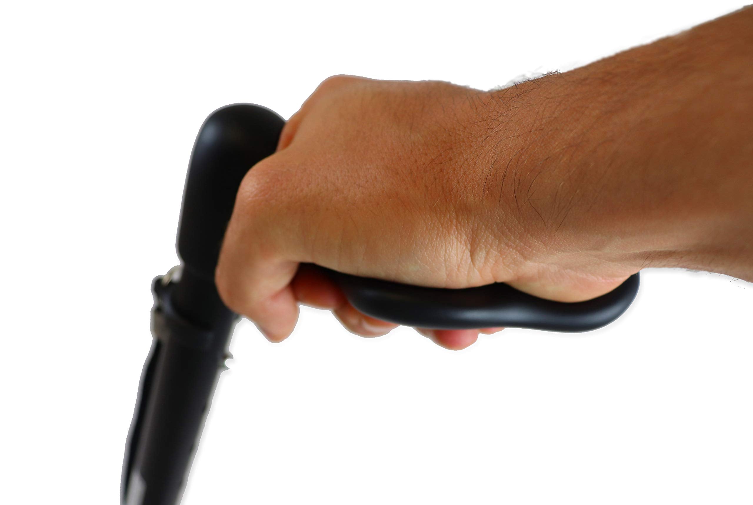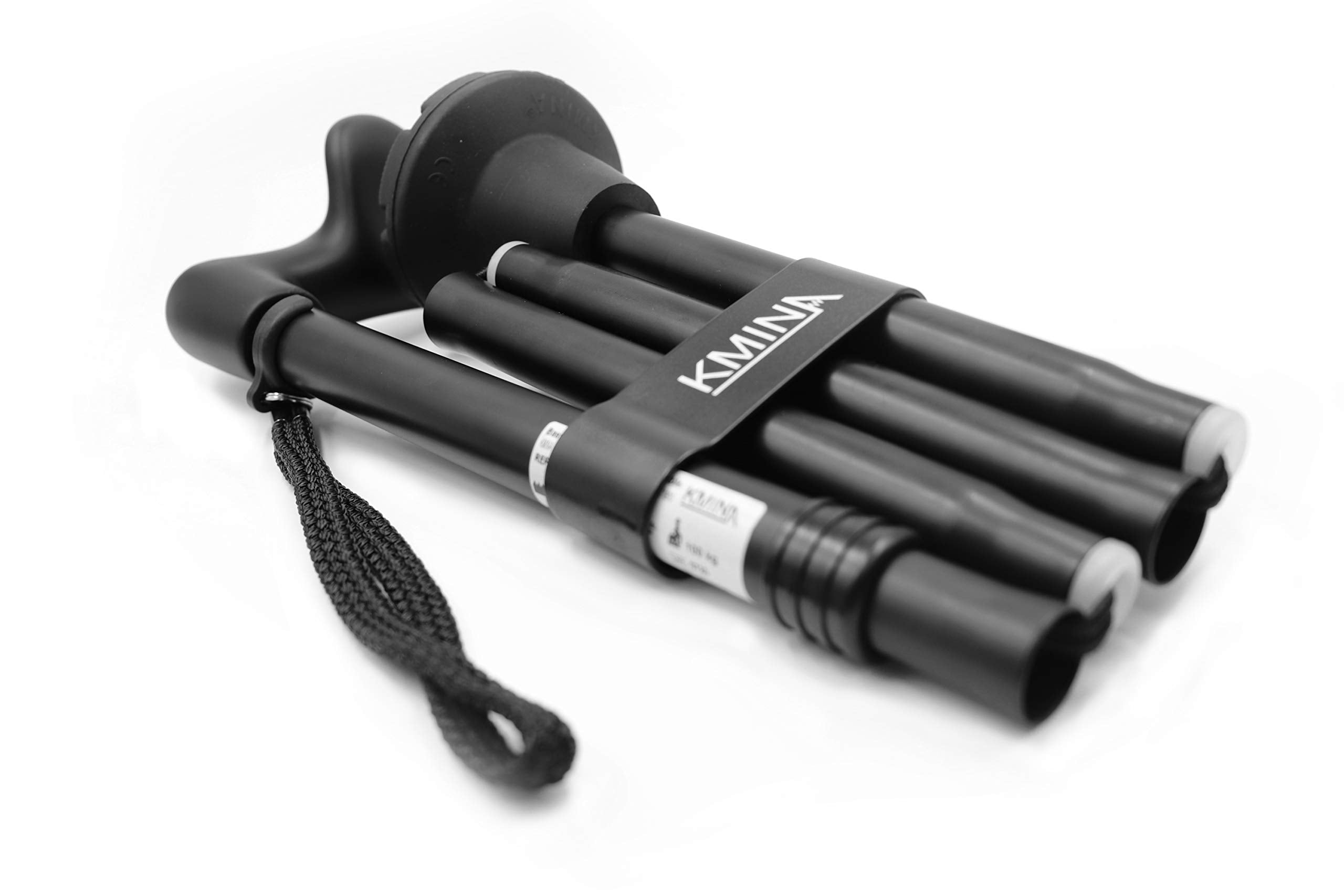 KMINA - Folding Walking Stick with Ergonomic Handle, Right, Height Adjustable, Seniors, Men, Women, Black - Made in Europe