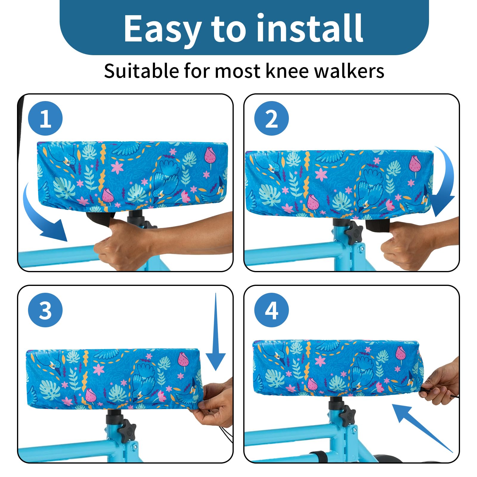 - 【Fits Most Knee Walkers】The knee walker pad for women features a stretchy drawstring and built-in elastic bands, making it easy to attach the foam padding to most rollator models. The non-slip cover stays firmly in place, reducing friction and preventing injury while protecting the knee walker pad from everyday wear and tear. Product dimensions: 13.4 (L) x 6.3 (W) x 5.5 (H).