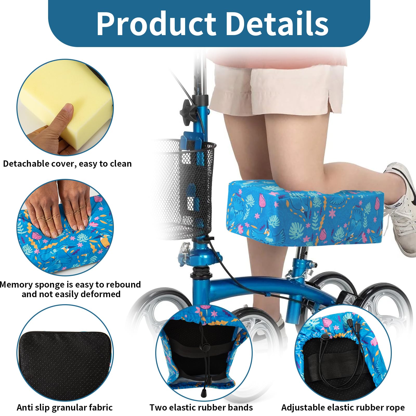 - 【Maximum Comfort】The scooter knee pad cover is made of 2' thick, highly elastic, high-density memory foam and soft velvet fabric. When kneeling on the knee scooter pad, the memory foam ensures maximum knee comfort by evenly distributing pressure across the knee and lower leg, significantly reducing pain and fatigue in the hips, knees, and legs.
