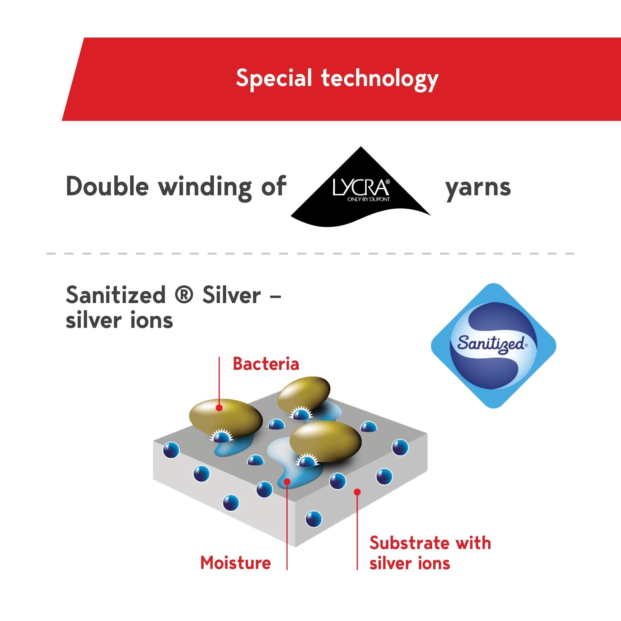 - Material: 60% nylon and 40% lycra. Processed with silver ions, which provides antibacterial treatment and prevents unpleasant odors.