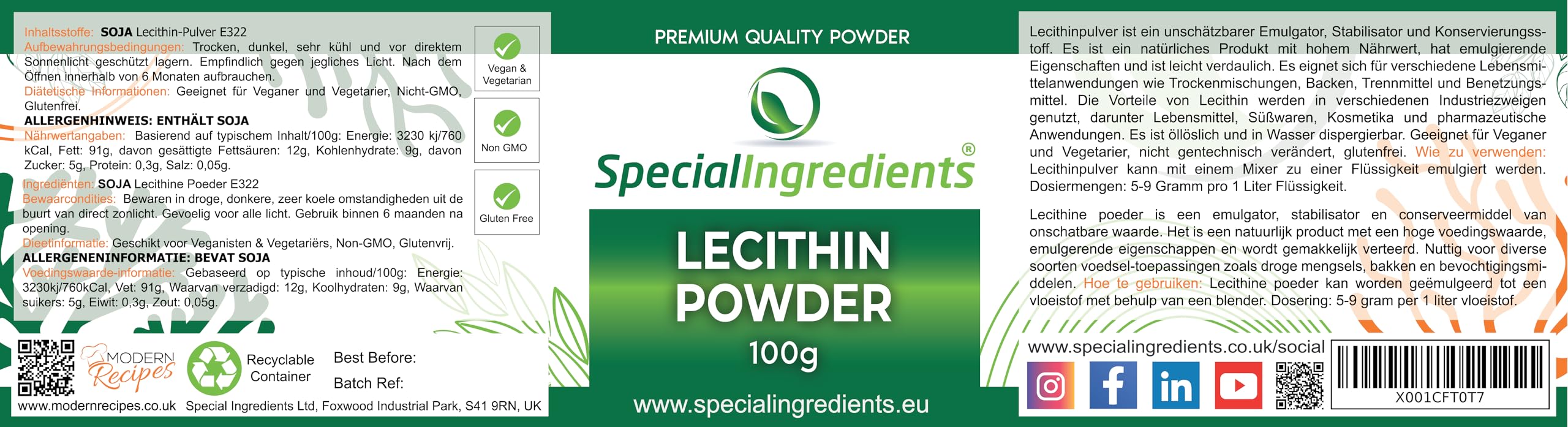 LECITHIN POWDER 100g HIGHEST QUALITY GMO-FREE (GERMAN LABELS AND INSTRUCTIONS)