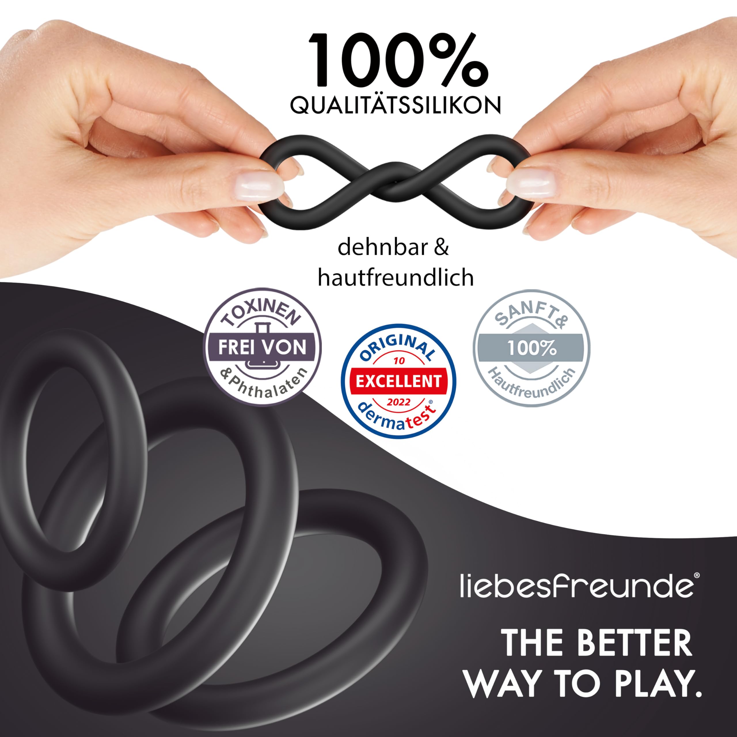 SAFE & EASY TO USE - Trust in the highest quality and safety! The rings are dermatologically tested and phthalate-free. Treat yourself to only the best โ with the deluxe cock rings from Liebesfreunde!